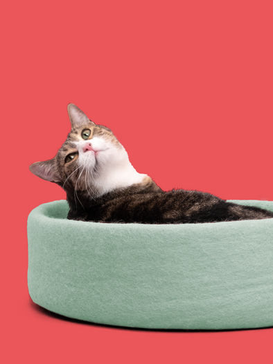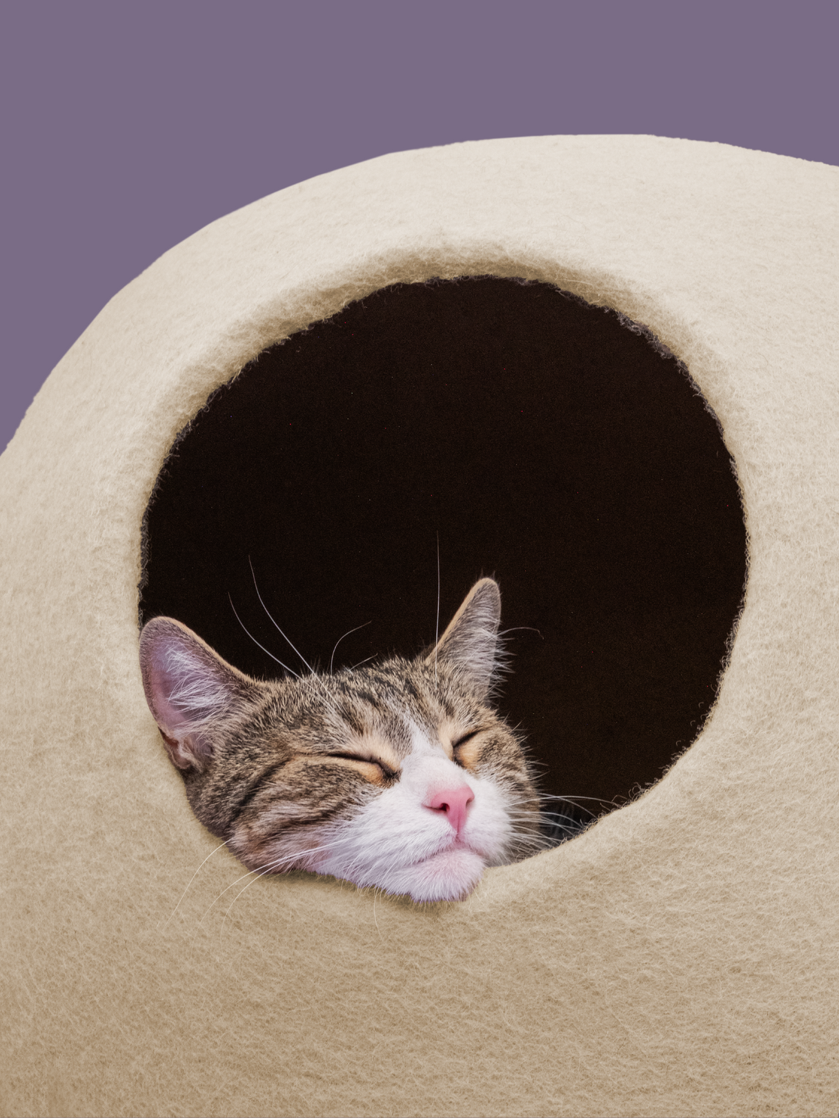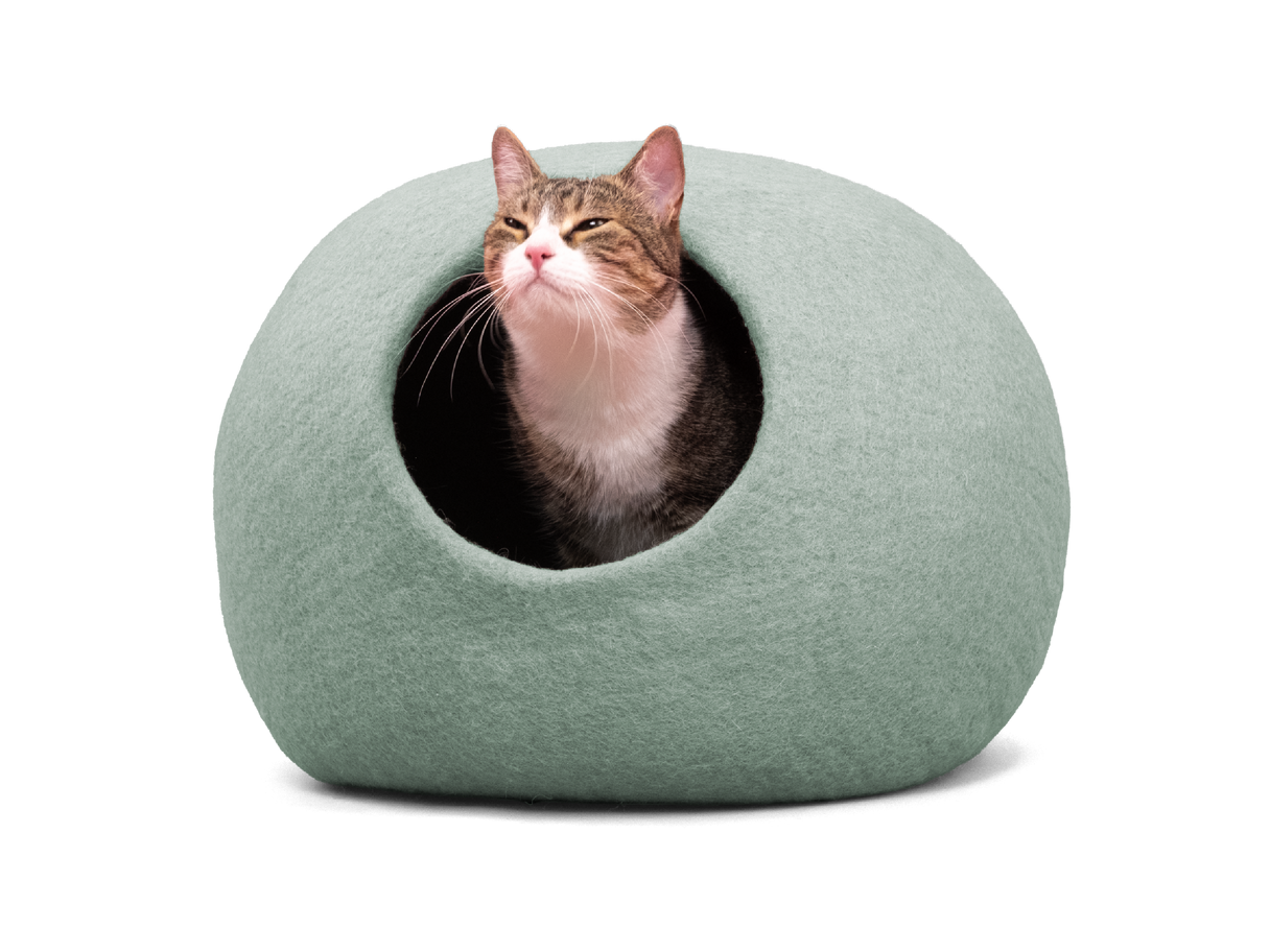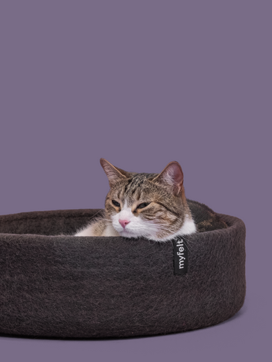 Cats of all sizes feel comfortable and safe in the caves and baskets hand-made from pure new wool. The sustainable material is easy to care for, hygienic and antibacterial thanks to the natural wool fat. Wool felt has antistatic properties and regulates temperature. The oases of rest made of felt are warm and comfortable in winter and pleasantly cool in summer.
