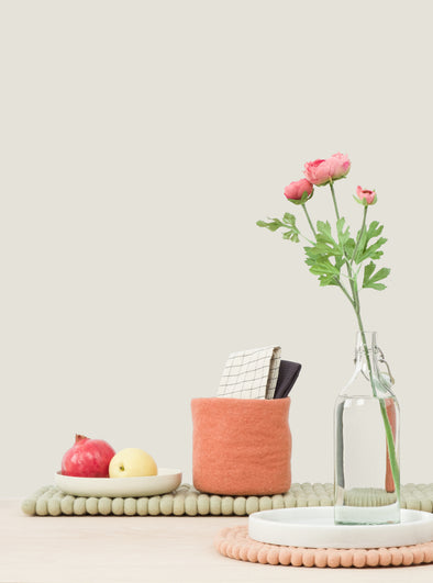 Small accessories from myfelt subtly shape the atmosphere of the dining room. The high-quality pot and glass coasters in many different variations not only bring colour to the table, but also prove to be particularly functional and durable. myfelt coasters are made of pure virgin wool and thus protect sensitive surfaces such as wood and glass from stains and scratches.