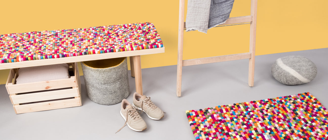 The myfelt seat and bench covers made of felt enrich the hallway with their soft feel and special seating feel. Seating in the hallway is visually enhanced by the attractive felt pads. Available in many different colours and sizes, the felt seat and bench pads can be easily combined with style. Whether in natural warm colours or in strong tones as an eye-catcher:, the felt cushions also convince through many years of durability and manufacturing in traditional handicraft. In addition to the standard sizes, myfelt also makes it possible to produce felt ball seat pads in any desired size for a perfectly fitting seating experience.