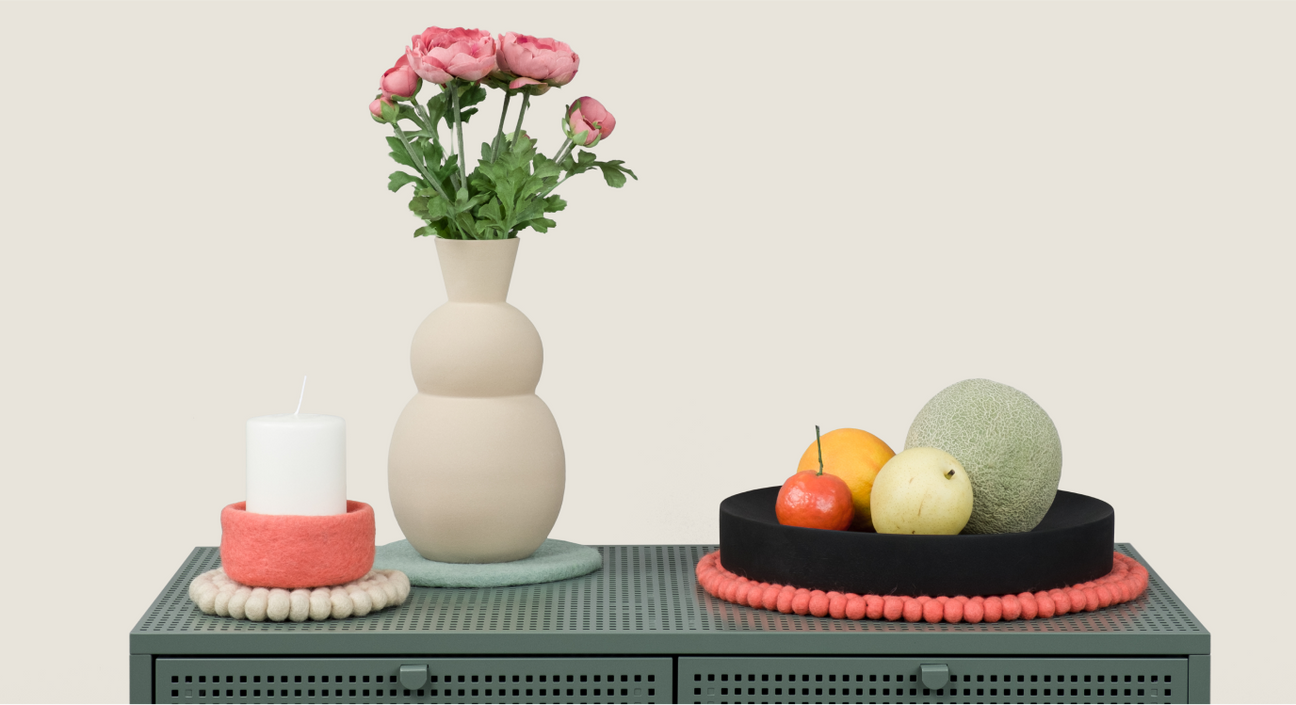 myfelt coasters are ideal as a decorative base. Everyday items such as smartphones, glasses or even jewellery can be placed in them, keeping the surface of your furniture protected. The soft felt coasters are available in a variety of colours and sizes. They are made of 100% pure new virgin from New Zealand and are made by hand. As stylish accessories in the bedroom, the coasters are particularly practical, as they are naturally water- and dirt-repellent and can be used on both sides.