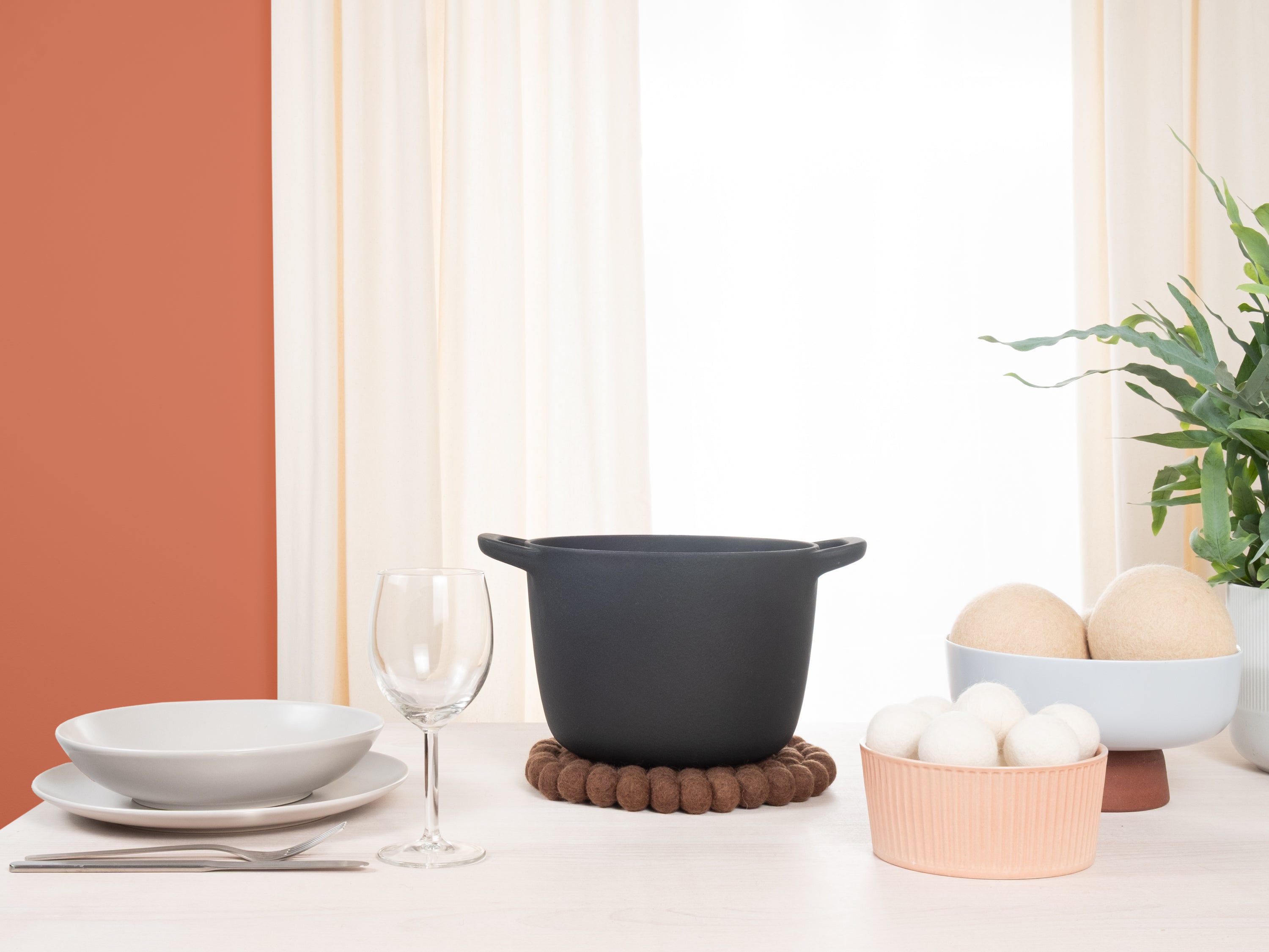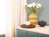 Round, brown trivet made of pure new wool | myfelt