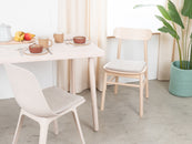 The light gray, flat seat pad Aven brings warmth and softness to your favorite chair. Made from pure new wool, handcrafted in Nepal and produced under fair conditions. myfelt seat pads are water- and dirt-repellent and can be used on both sides.