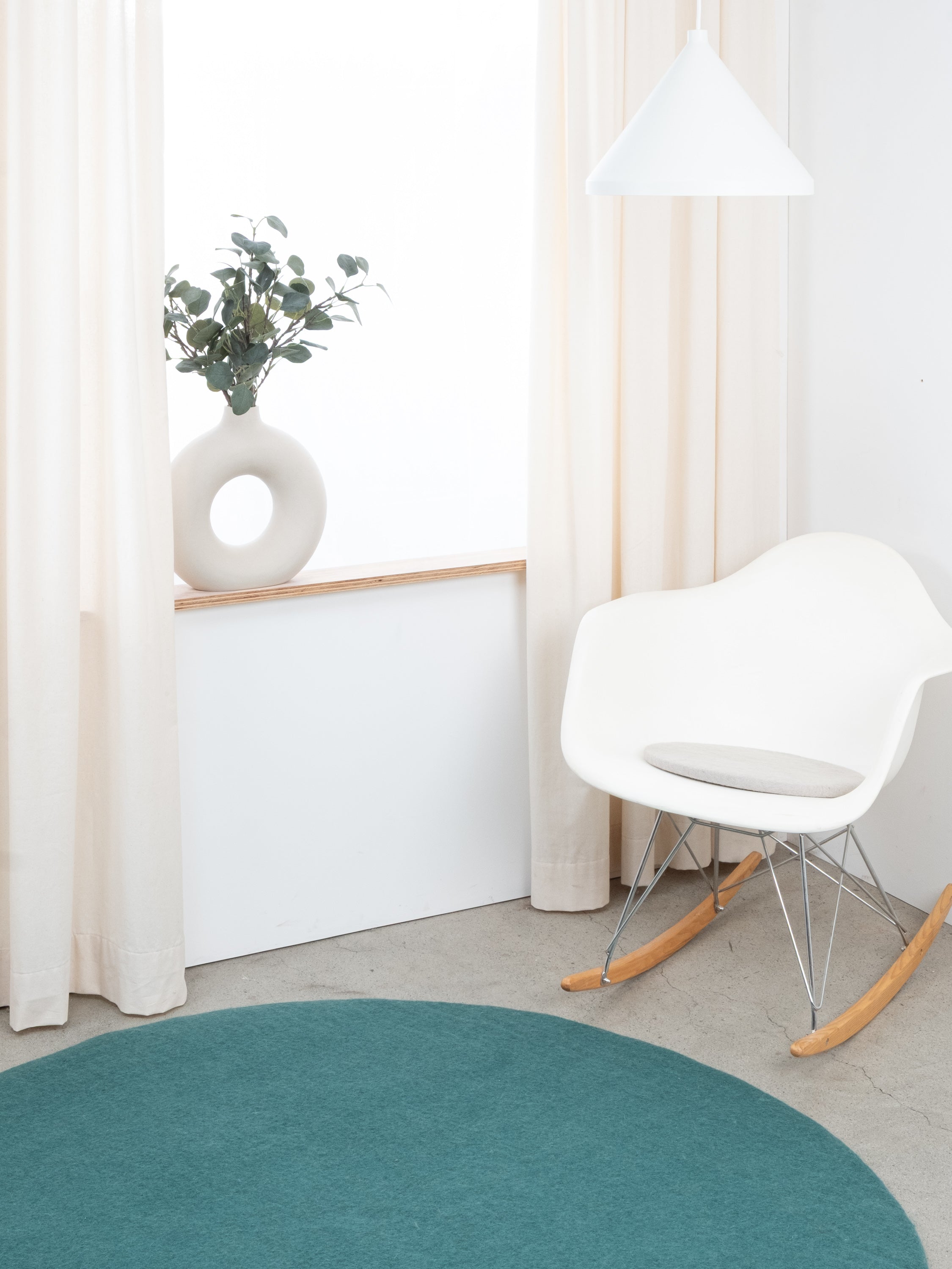 The light gray, flat seat pad Aven brings warmth and softness to your favorite chair. Made from pure new wool, handcrafted in Nepal and produced under fair conditions. myfelt seat pads are water- and dirt-repellent.