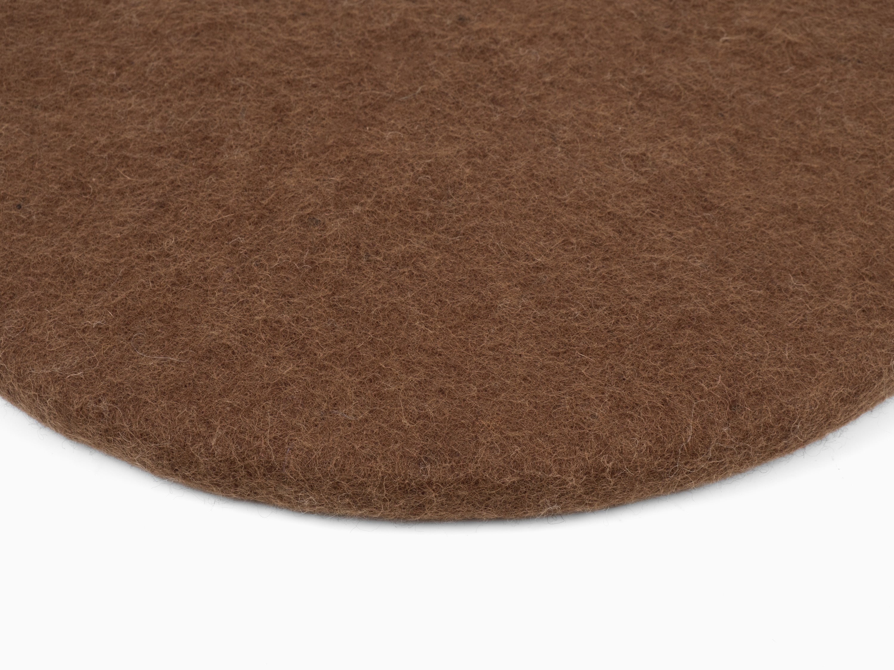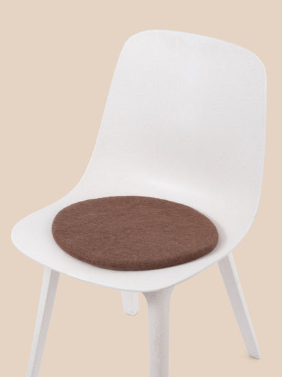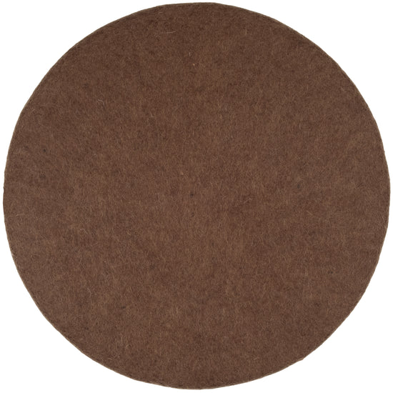 Round, brown flat seat pad made of pure new wool.