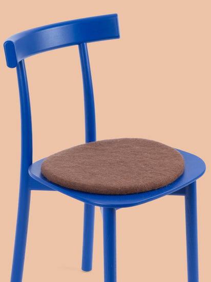 The brown, flat seat pad Egon brings warmth and softness to your favorite chair. Made from pure new wool, handcrafted in Nepal and produced under fair conditions. myfelt seat pads are water- and dirt-repellent and can be used on both sides.