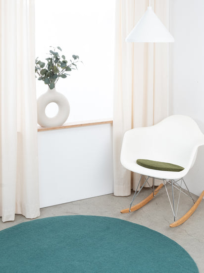 The dark green, flat seat pad Jost brings warmth and softness to your favorite chair. Made from pure new wool, handcrafted in Nepal and produced under fair conditions. myfelt seat pads are water- and dirt-repellent and can be used on both sides.
