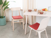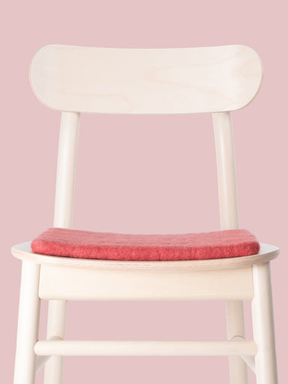 The wine red, flat seat pad Kaja brings warmth and softness to your favorite chair. Made from pure new wool, handcrafted in Nepal and produced under fair conditions. myfelt seat pads are water- and dirt-repellent and can be used on both sides.