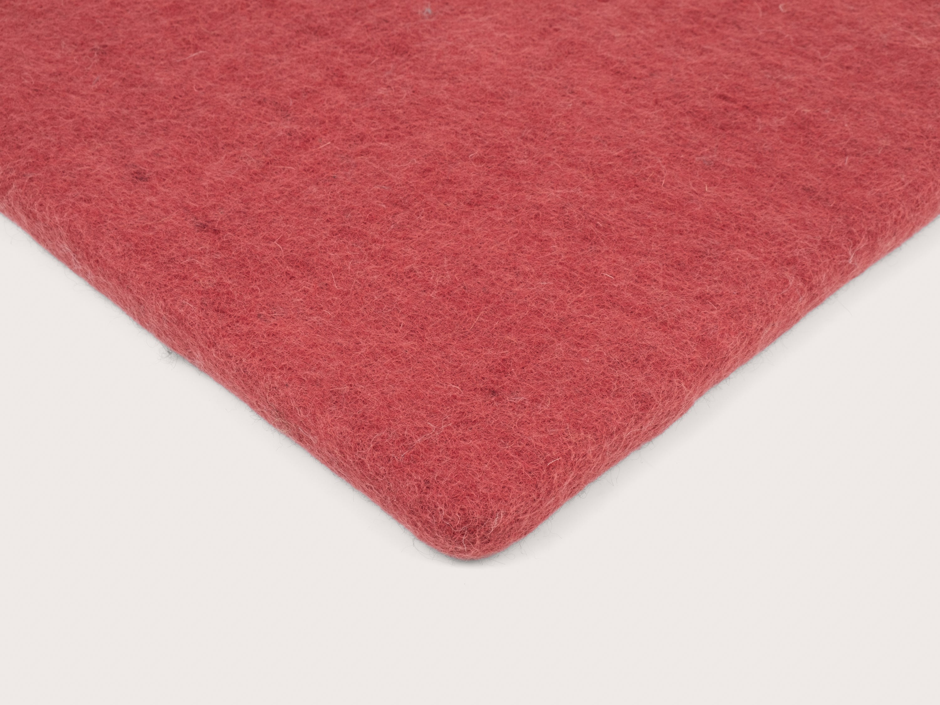 Square, wine red flat seat pad made of pure new wool.