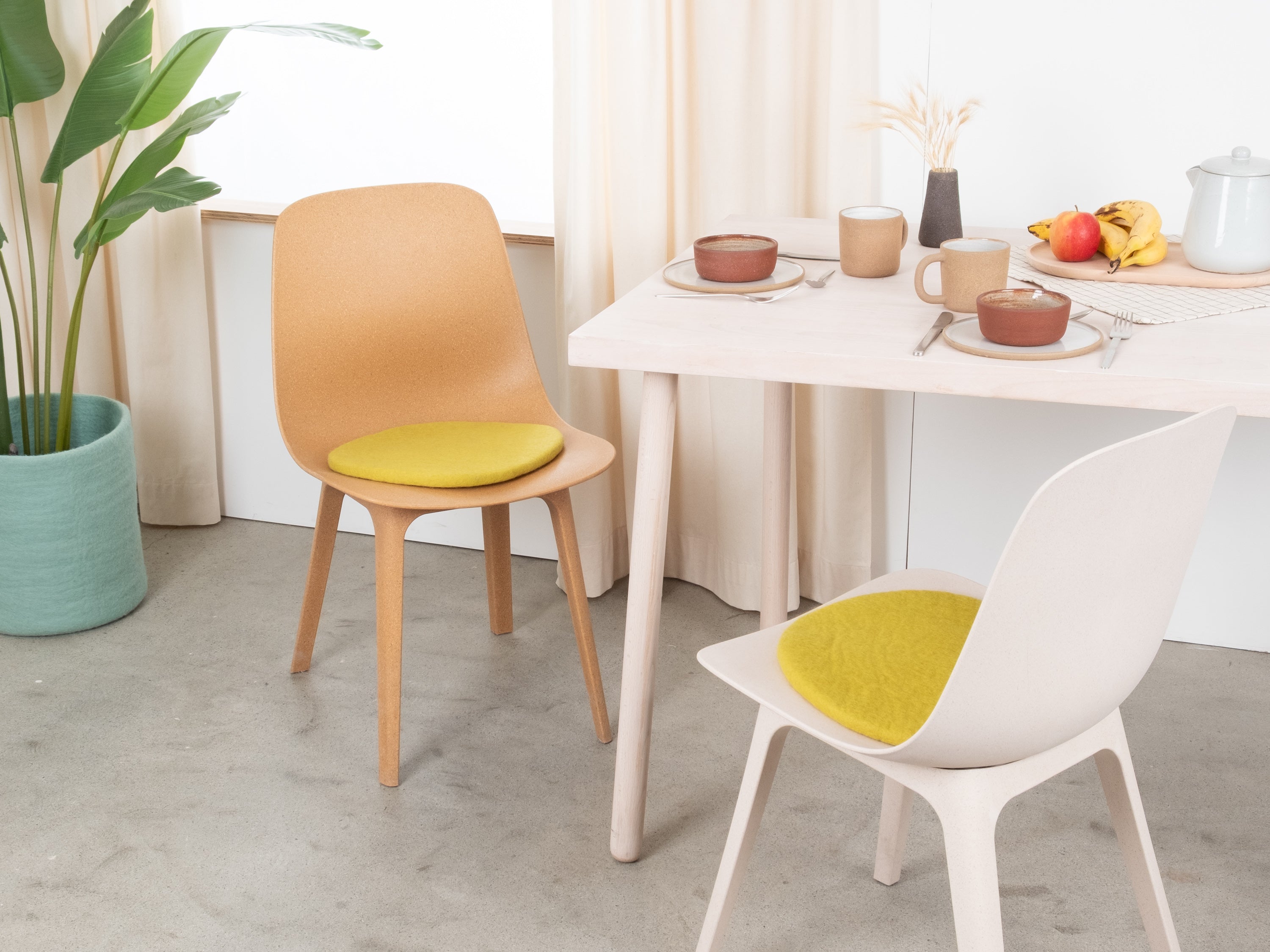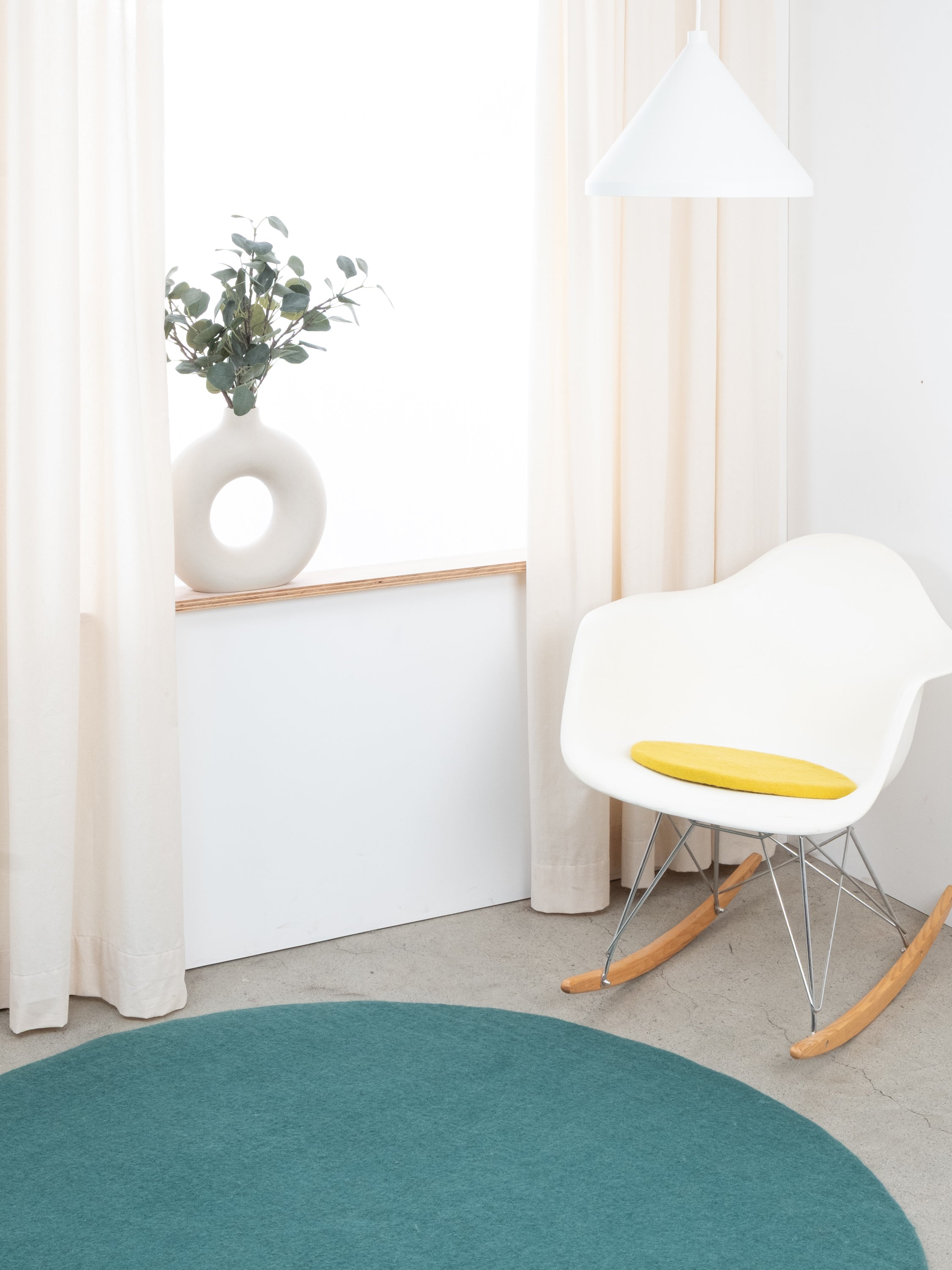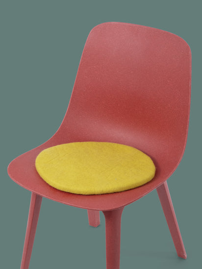 The green-yellow, flat seat pad Kata brings warmth and softness to your favorite chair. Made from pure new wool, handcrafted in Nepal and produced under fair conditions. myfelt seat pads are water- and dirt-repellent and can be used on both sides.