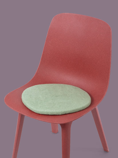 The light green, flat seat pad Lasse brings warmth and softness to your favorite chair. Made from pure new wool, handcrafted in Nepal and produced under fair conditions. myfelt seat pads are water- and dirt-repellent and can be used on both sides.