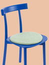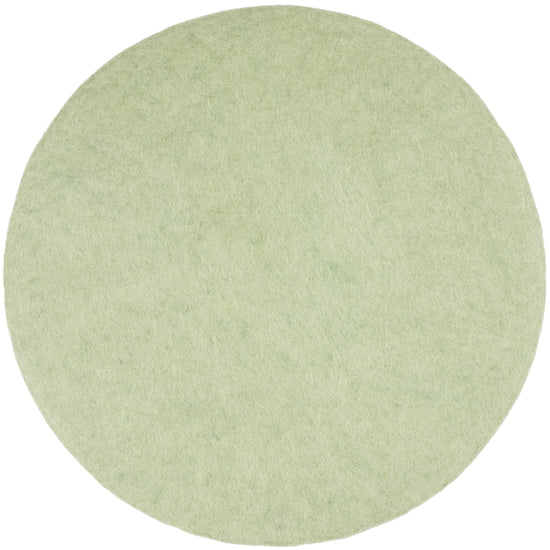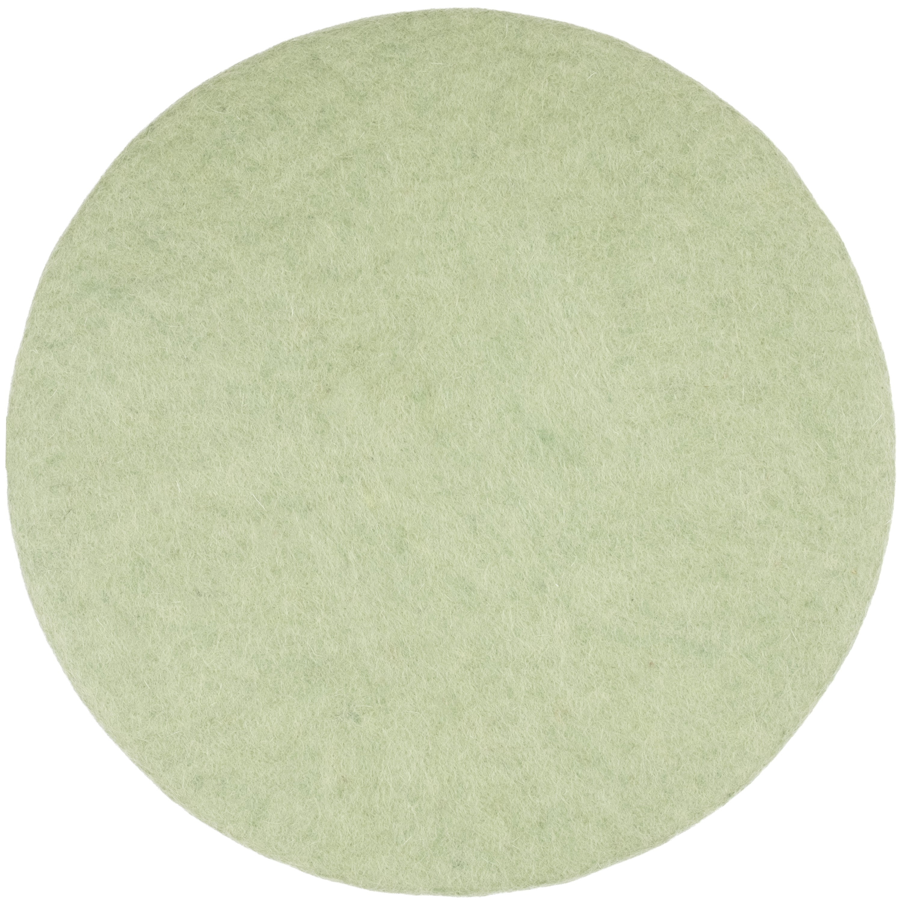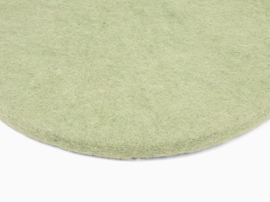 Round, light green flat seat pad made of pure new wool.