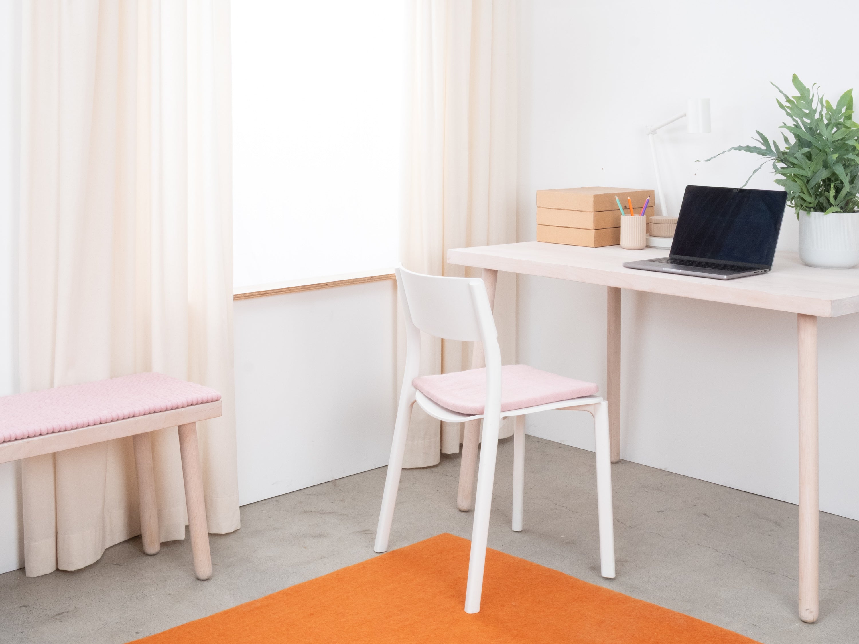 The soft pink, flat seat pad Mona brings warmth and softness to your favorite chair. Made from pure new wool, handcrafted in Nepal and produced under fair conditions. myfelt seat pads are water- and dirt-repellent and can be used on both sides.