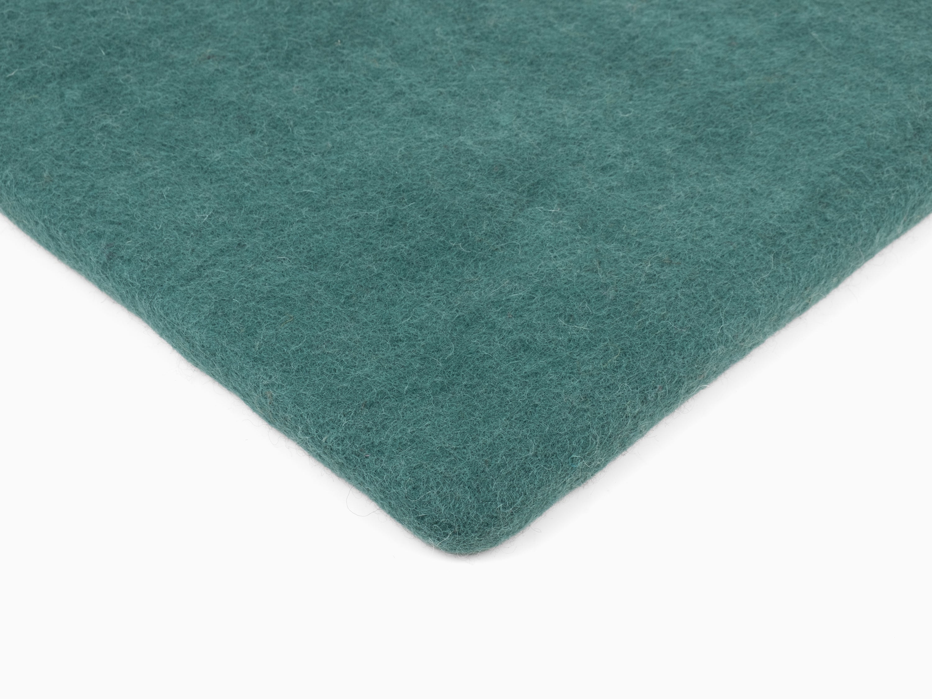 Square, petrol-colored flat seat pad made of pure new wool.