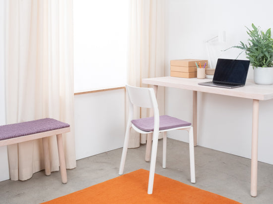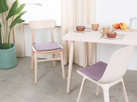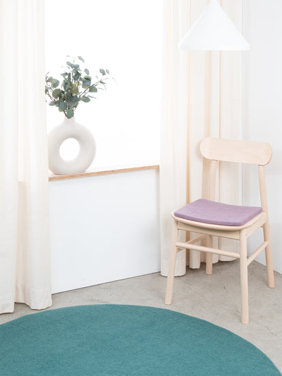 The lilac-gray, flat seat pad Tove brings warmth and softness to your favorite chair. Made from pure new wool, handcrafted in Nepal and produced under fair conditions. myfelt seat pads are water- and dirt-repellent and can be used on both sides.
