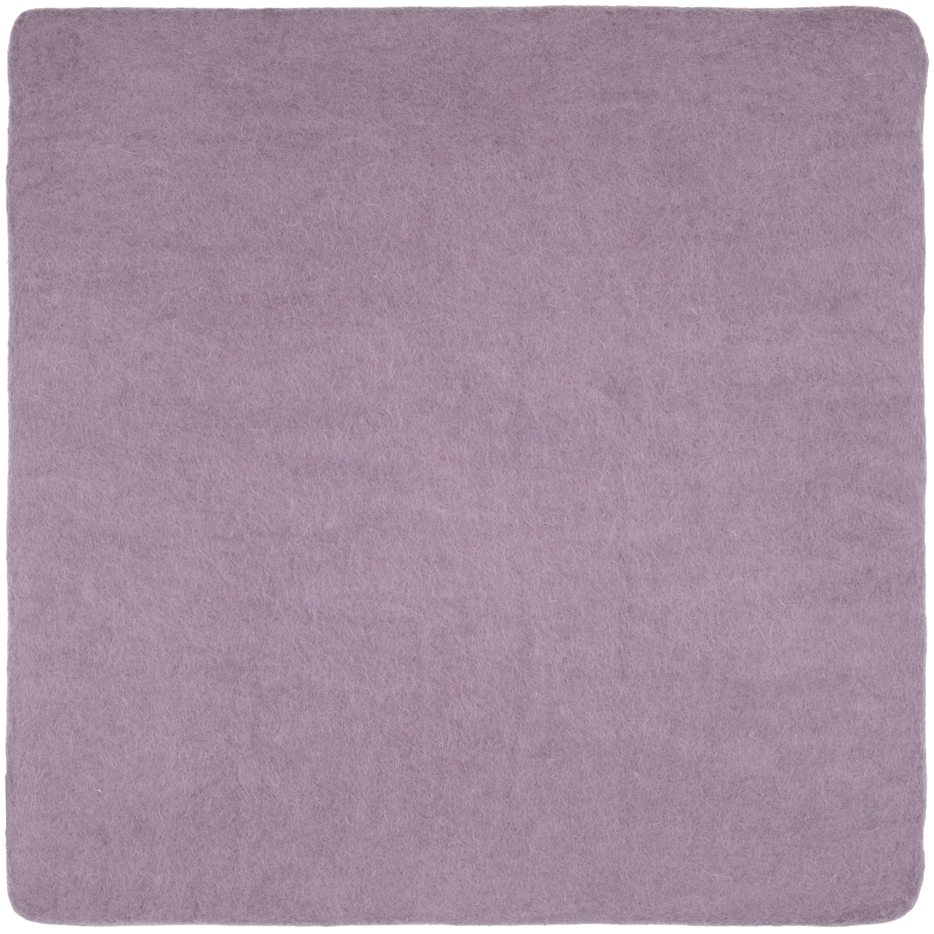 Square, lilac-gray flat seat pad made of pure new wool.