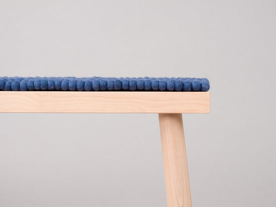 For the dark blue bench pad Alva individual felt balls made of pure virgin wool are sewn together by hand. Not only does it create a pleasant and comfortable sitting experience, its classic and timeless design also adds a particularly elegant touch to your favorite bench. myfelt bench pads are water- and dirt-repellent, can be used on both sides and are available in every custom size.