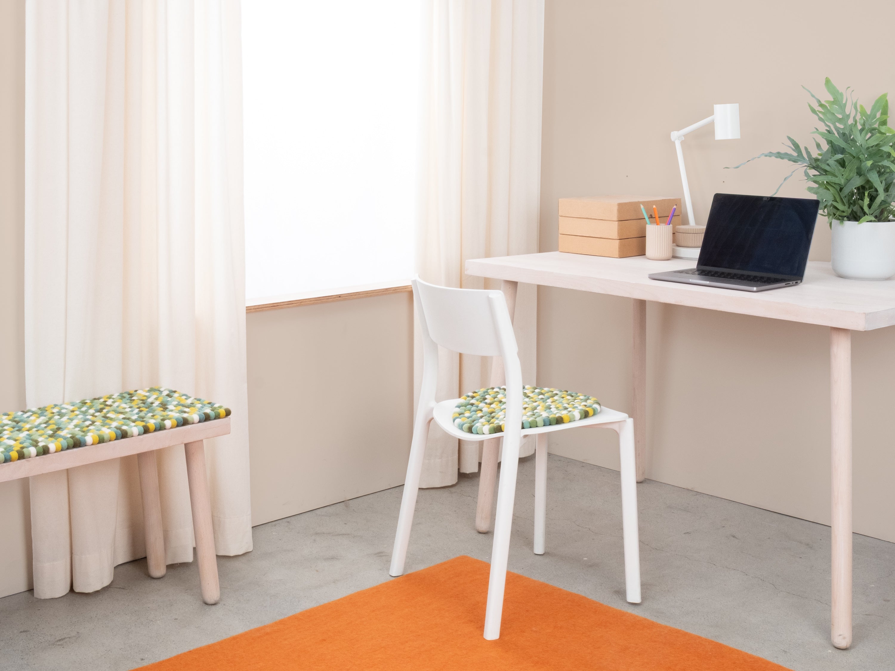 Felt Ball bench pad in multicolour made of virgin wool in your custom size.