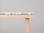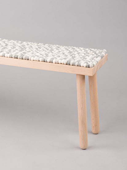 Individual felt balls made of pure virgin wool are sewn together by hand to create the multi-colored, yet natural bench pad Hella. The pad not only creates a pleasant and comfortable sitting experience, but its unique design also makes it a real eye-catcher on your favorite bench. myfelt bench pads are water- and dirt-repellent, can be used on both sides and are available in every custom size.