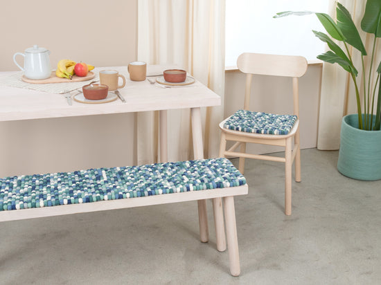 Felt Ball bench pad in multicolour made of virgin wool in your custom size.