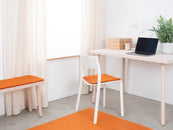 The orange-colored seat pad Afra brings warmth and softness to your favorite chair. Made from pure new wool, handcrafted in Nepal and produced under fair conditions. myfelt seat pads are water- and dirt-repellent and can be used on both sides.