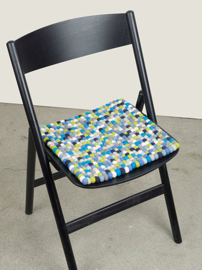 Multi-coloured, square Seat Pad made from Virgin Wool.