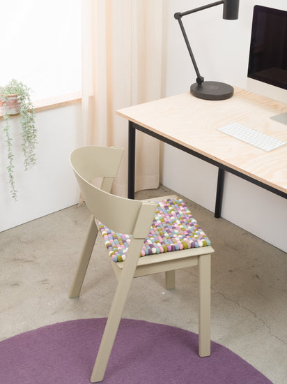 The square seat pad Greta (36 x 36 cm), made pure, untreated virgin wool, not only creates a pleasant and comfortable sitting experience, but brings an extra portion of “pizzazz” to the chair with its elegant design. Myfelt seat pads are dirt and water repellent.
