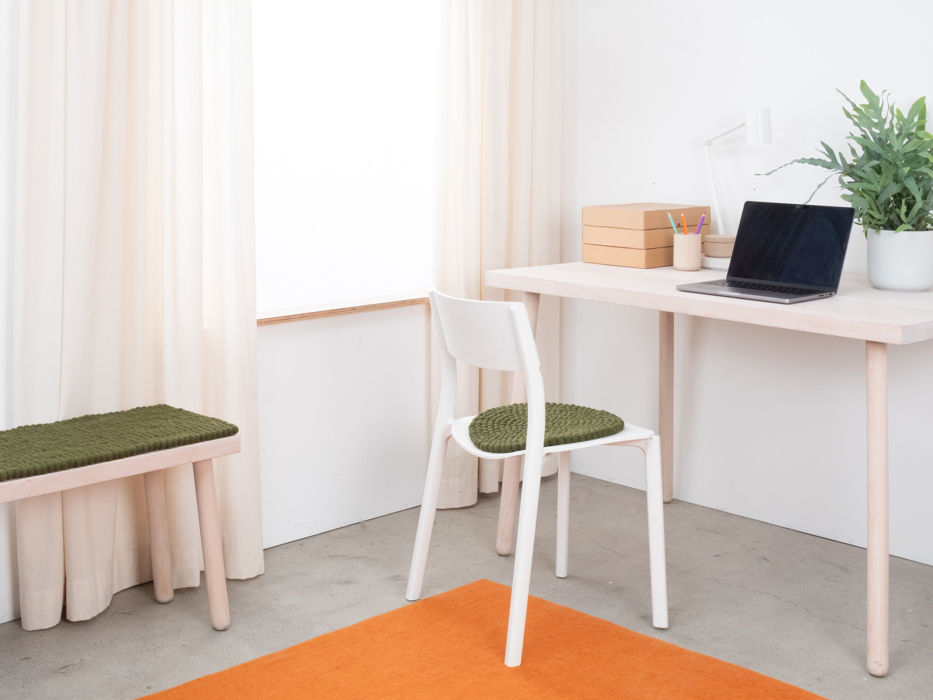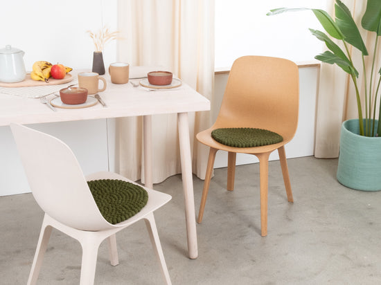 The dark green seat pad Jost brings warmth and softness to your favorite chair. Made from pure new wool, handcrafted in Nepal and produced under fair conditions. myfelt seat pads are water- and dirt-repellent and can be used on both sides.