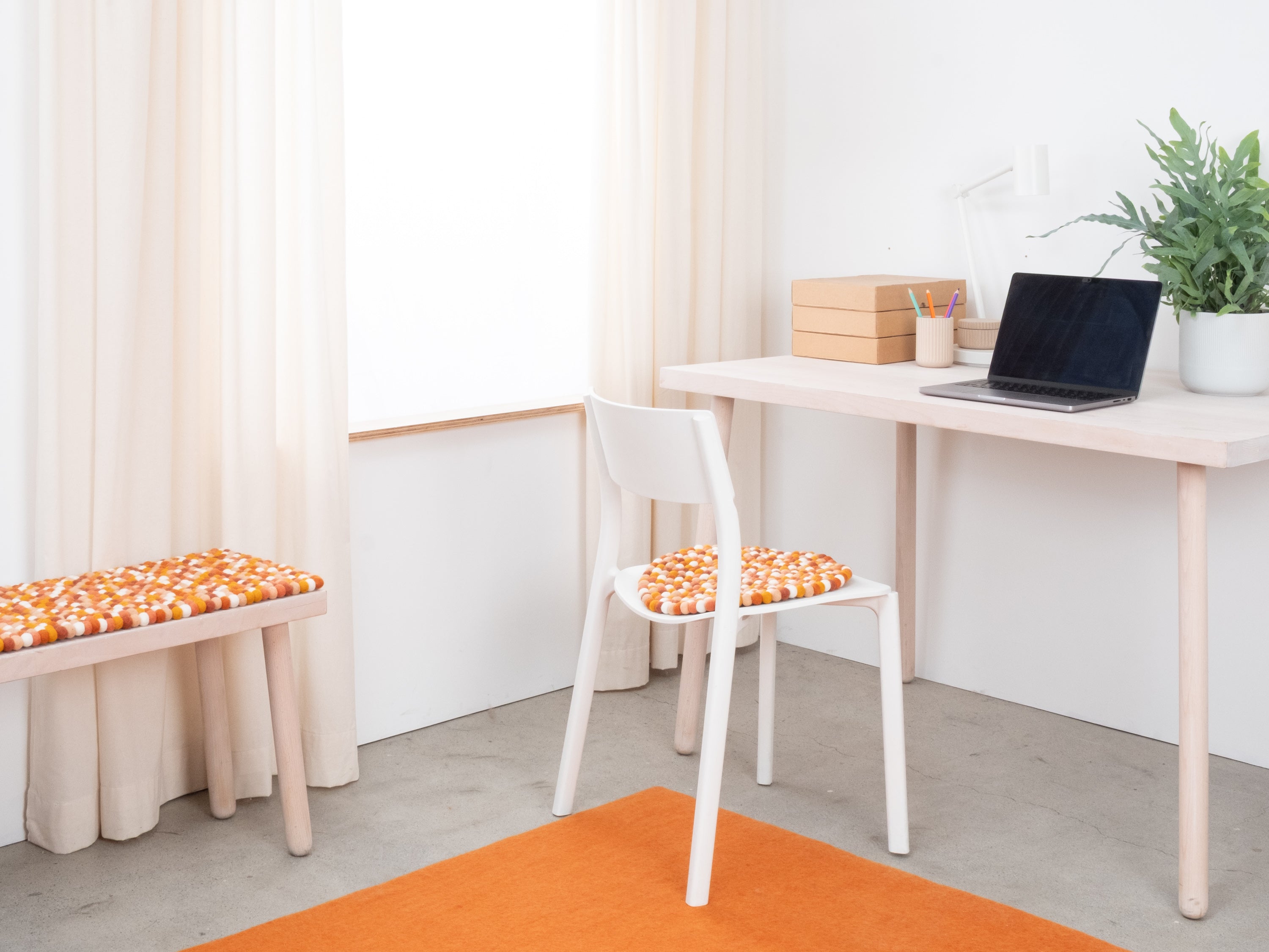 The multicolored seat pad Juna brings warmth and softness to your favorite chair. Made from pure new wool, handcrafted in Nepal and produced under fair conditions. myfelt seat pads are water- and dirt-repellent and can be used on both sides.