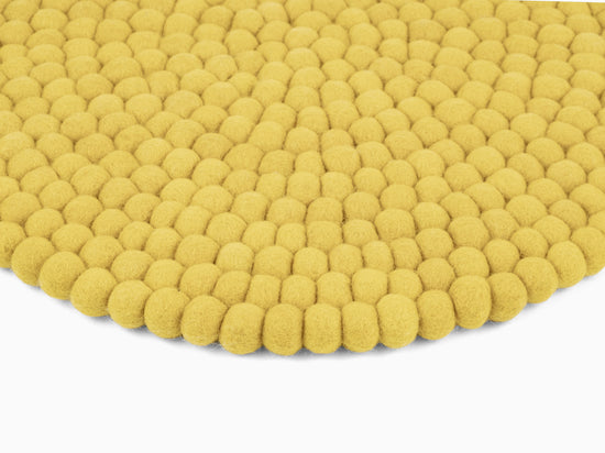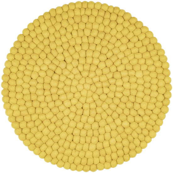 Round, green-yellow seat pad made of pure new wool.