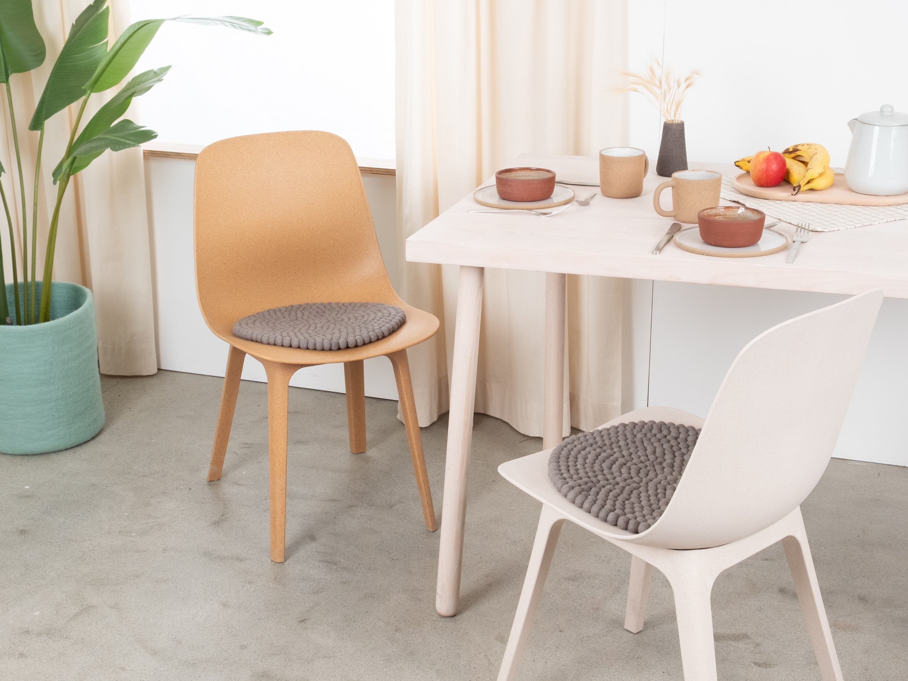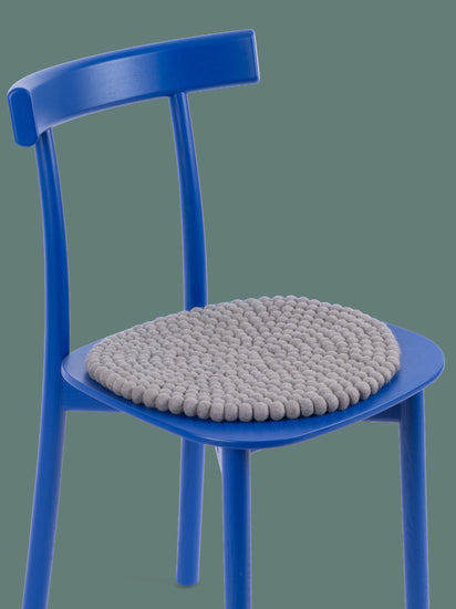 The gray seat pad Kian brings warmth and softness to your favorite chair. Made from pure new wool, handcrafted in Nepal and produced under fair conditions. myfelt seat pads are water- and dirt-repellent and can be used on both sides.