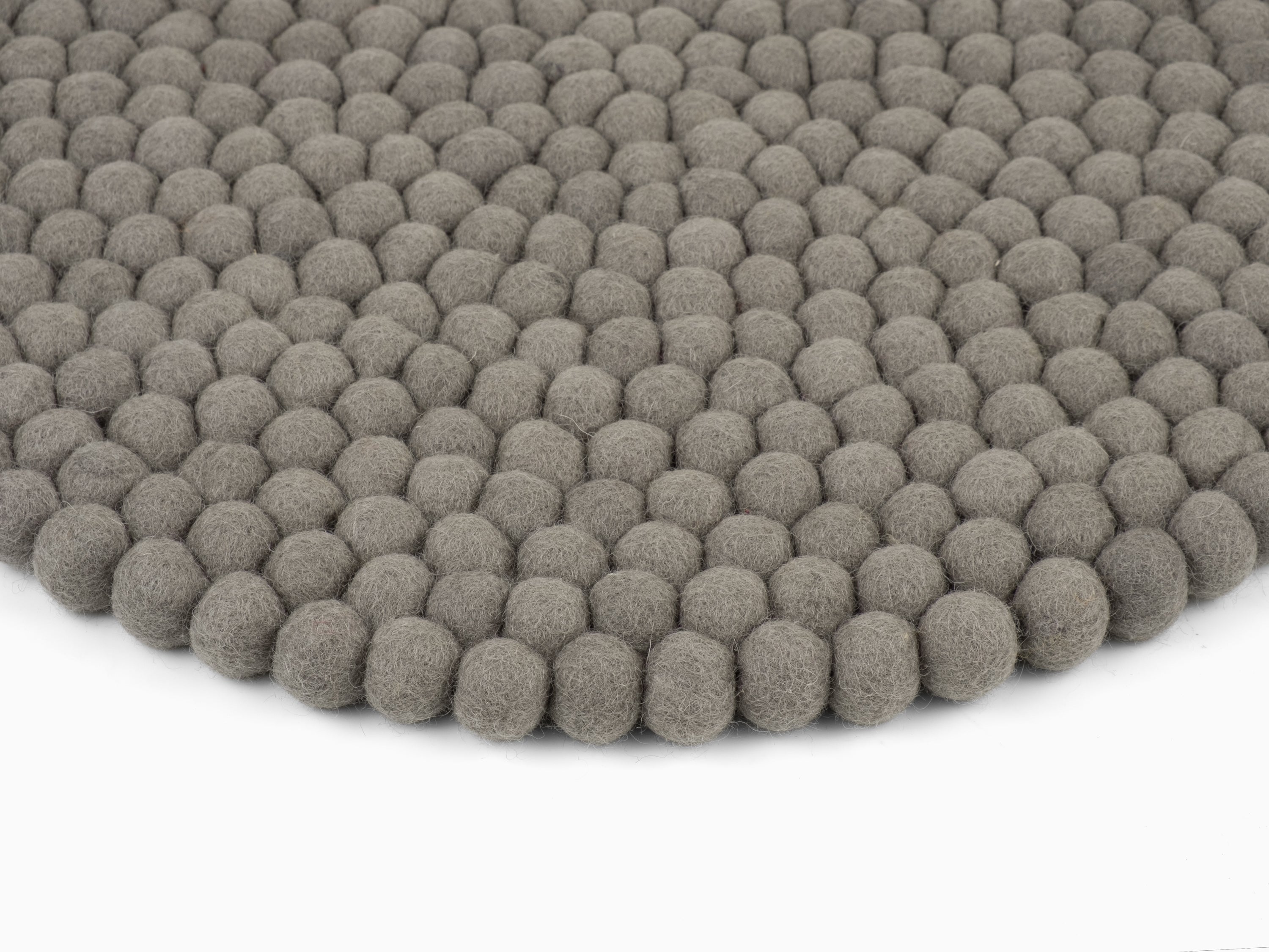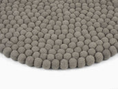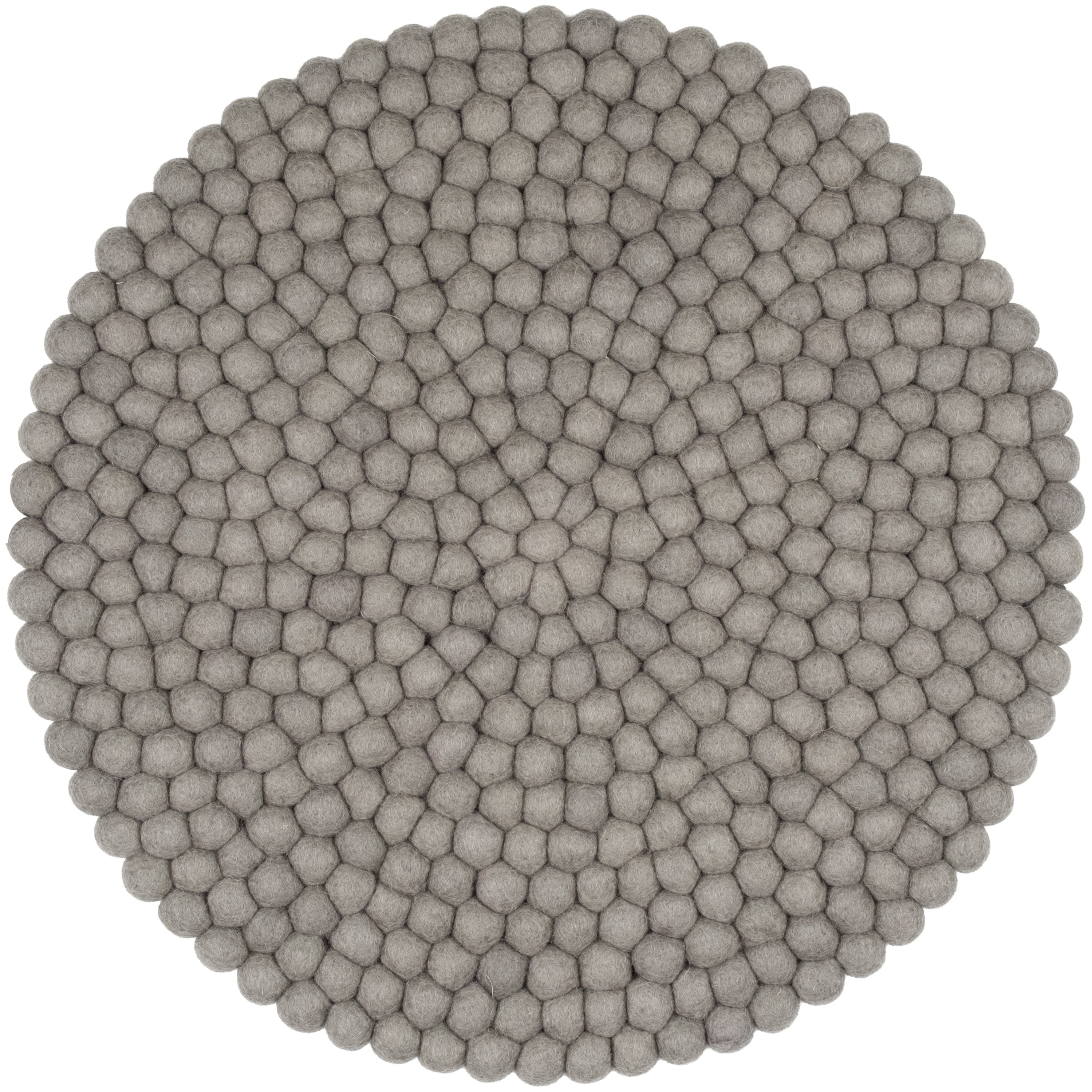 Round, gray seat pad made of pure new wool.