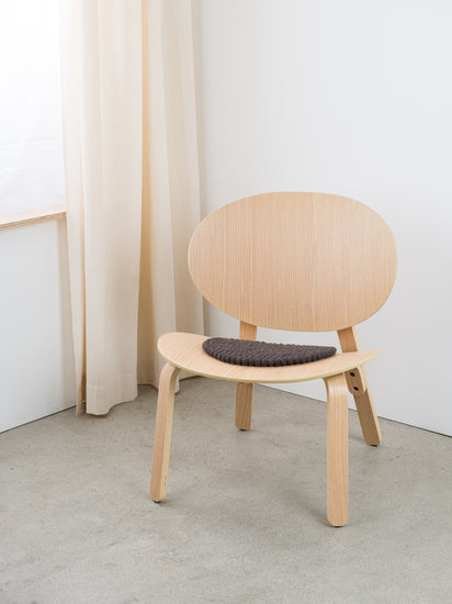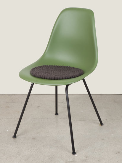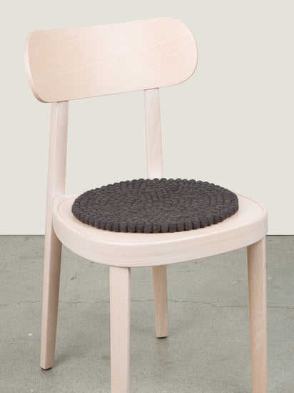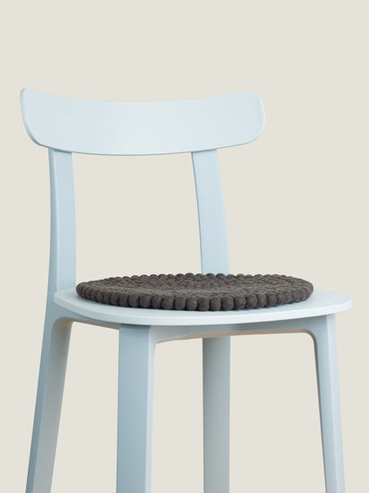 Charcoal-coloured, round Seat Pad made from Virgin Wool.