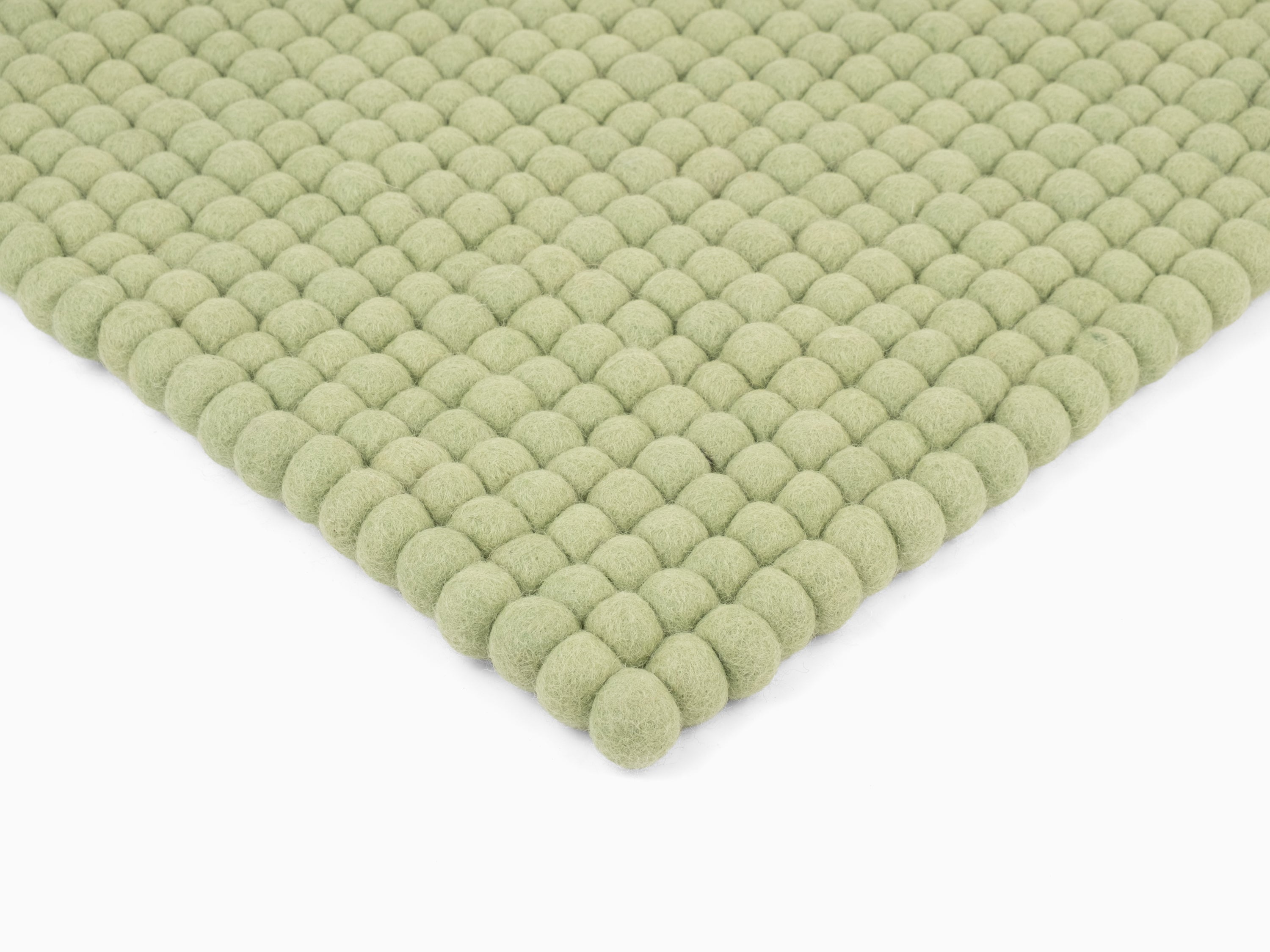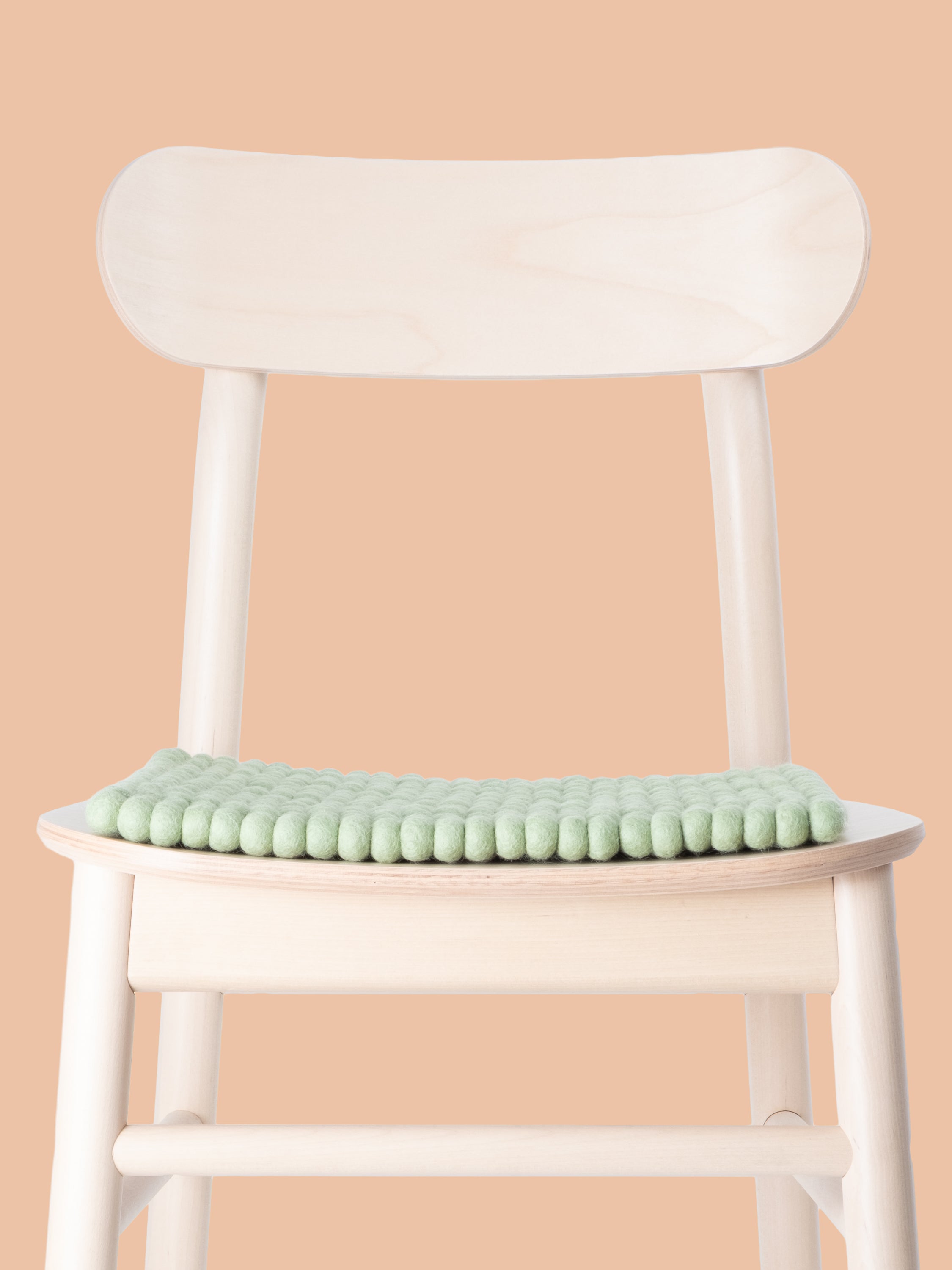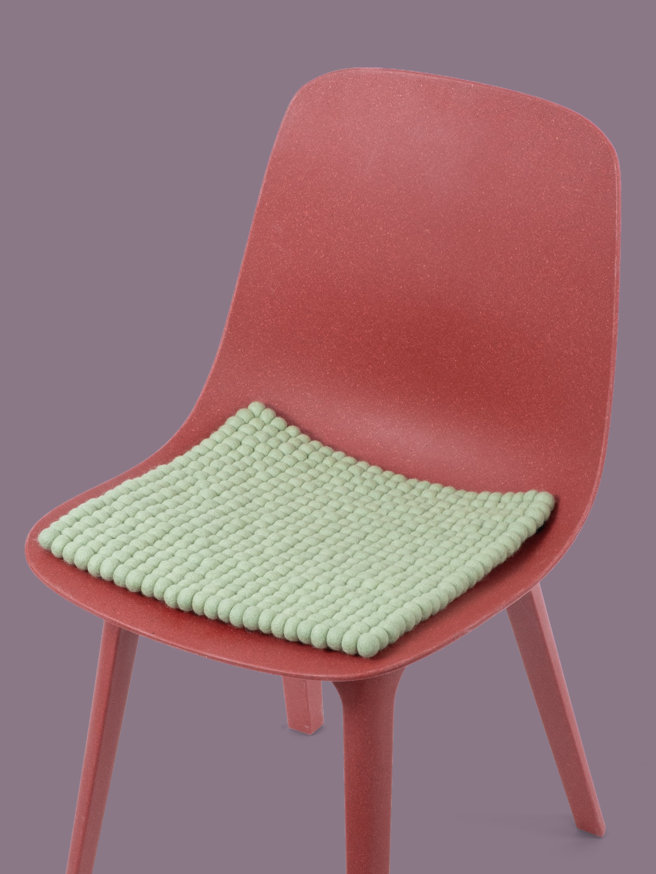 Square, light green seat pad made of pure new wool.
