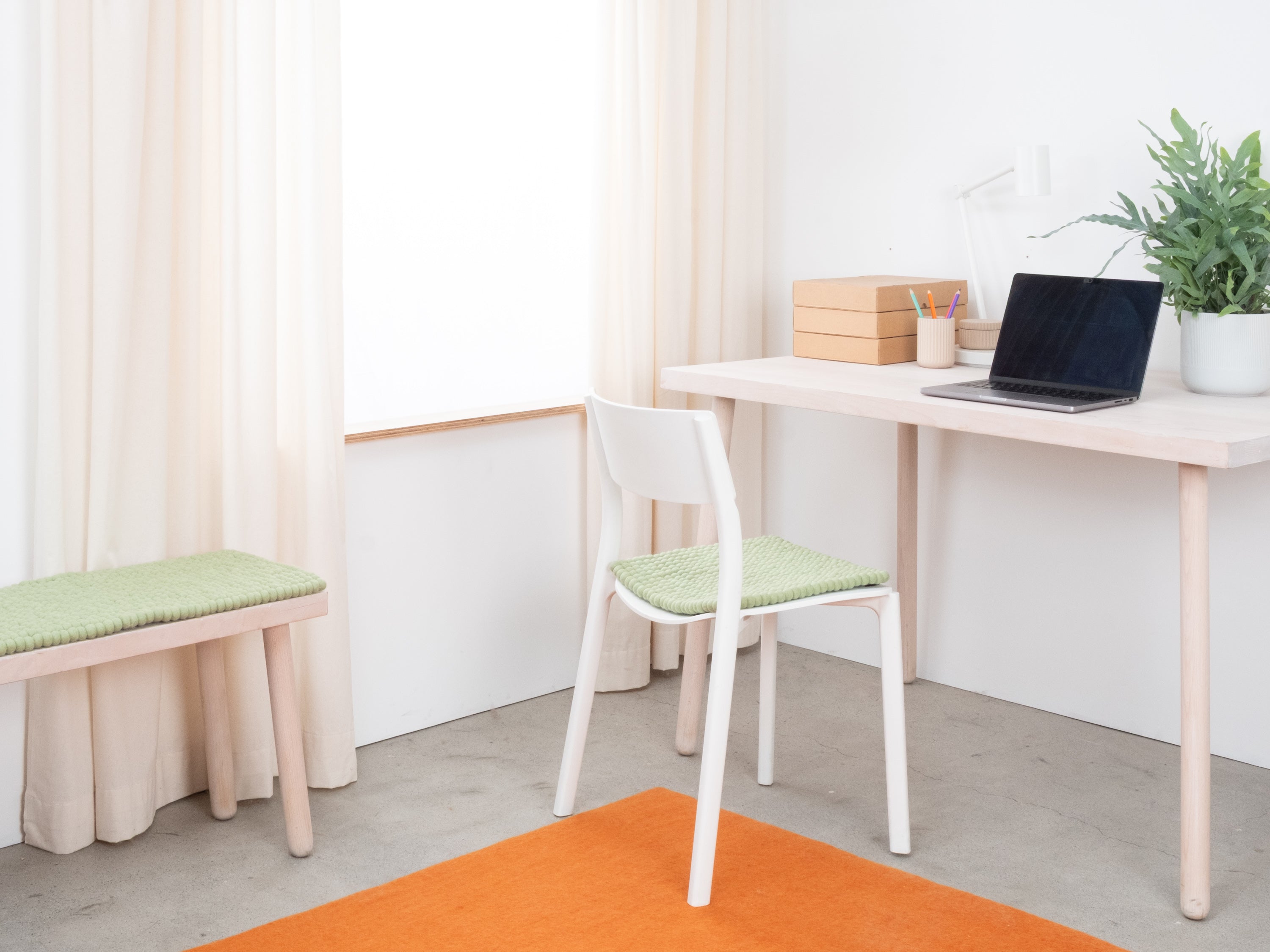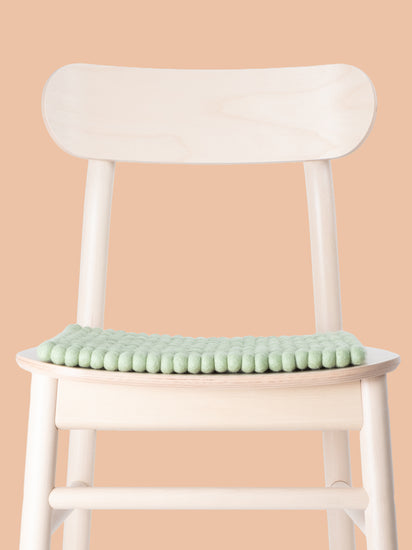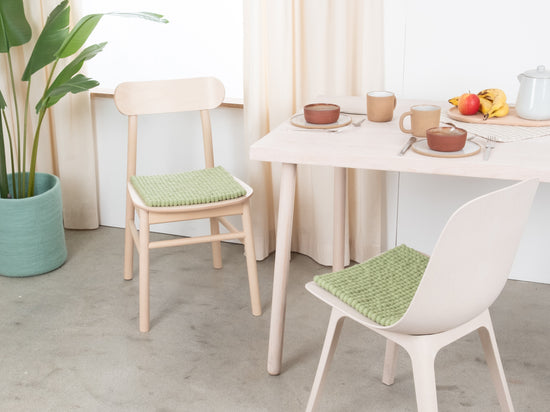 The light green seat pad Lasse brings warmth and softness to your favorite chair. Made from pure new wool, handcrafted in Nepal and produced under fair conditions. myfelt seat pads are water- and dirt-repellent and can be used on both sides.