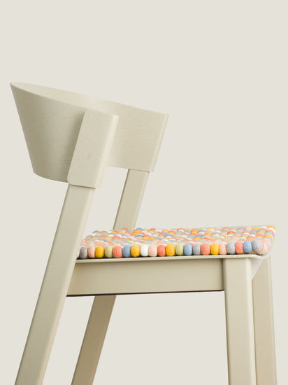 For the honey-coloured Liese seat cushion (36 x 36, square), individual felt balls made of pure virgin wool are sewn together by hand. The pad not only creates a pleasant and comfortable sitting experience, but its balanced design also ensures a dreamy, yet playful look on any favourite chair. myfelt seat pads are water- and dirt-repellent and can be used on both sides.