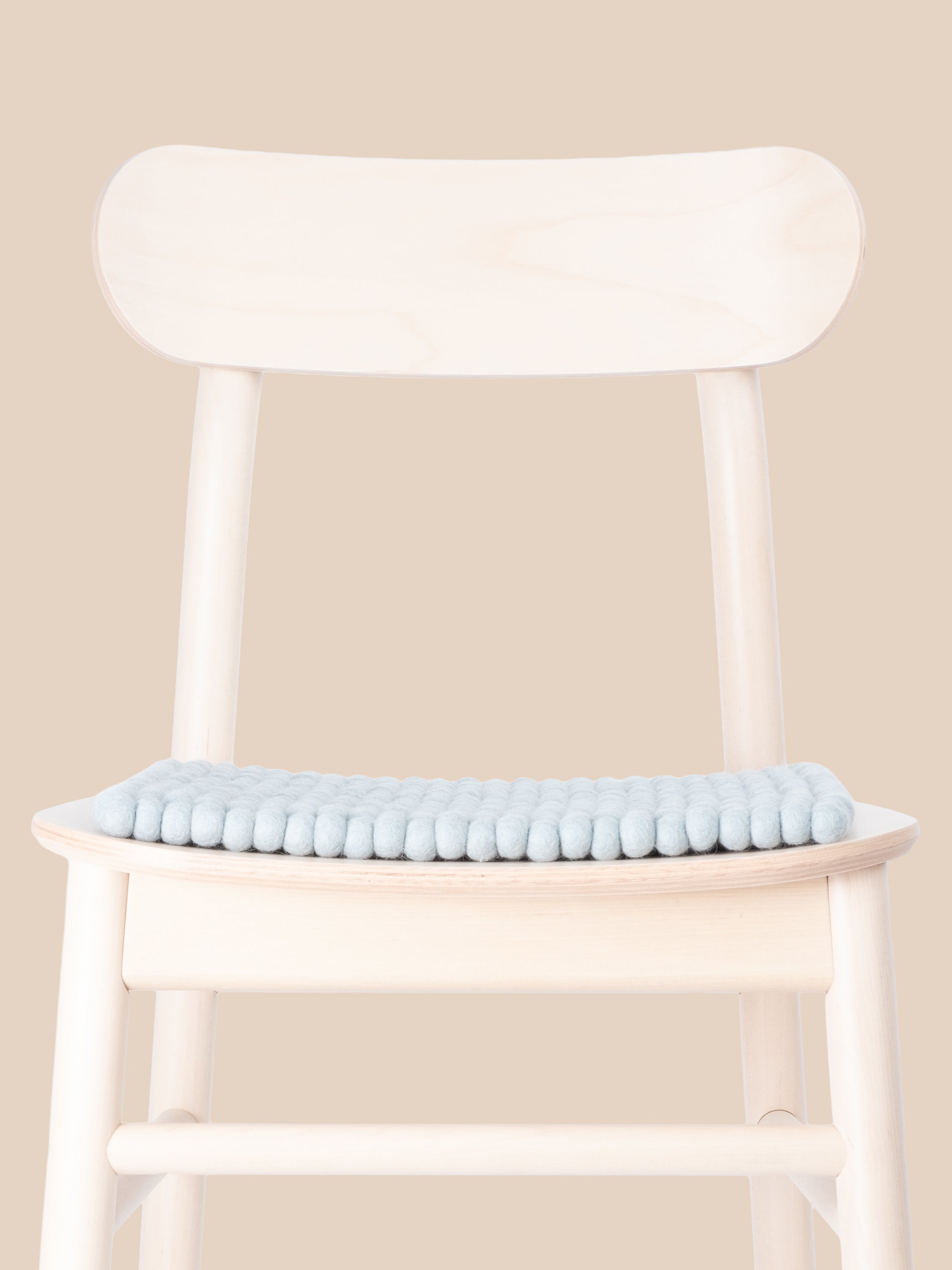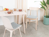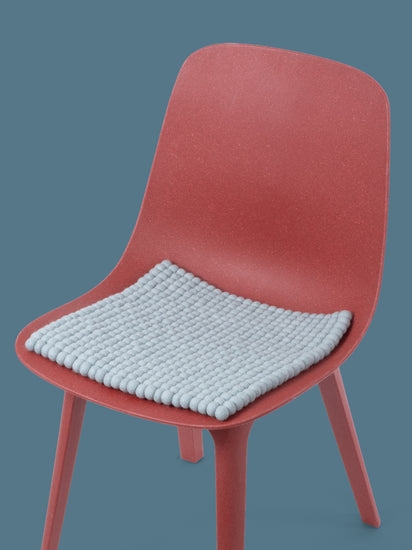 The light blue seat pad Liv brings warmth and softness to your favorite chair. Made from pure new wool, handcrafted in Nepal and produced under fair conditions. myfelt seat pads are water- and dirt-repellent and can be used on both sides.