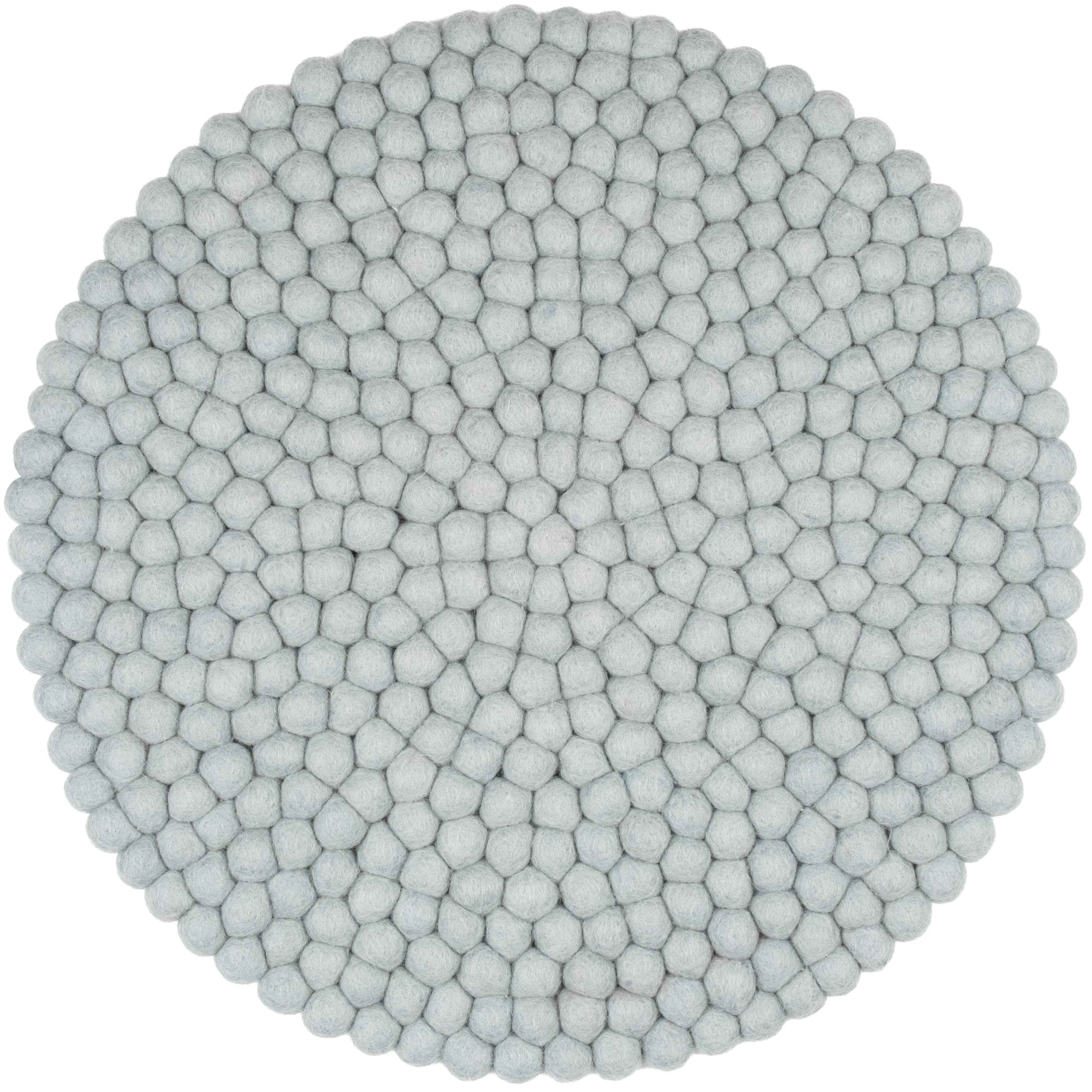 Round, light blue seat pad made of pure new wool.