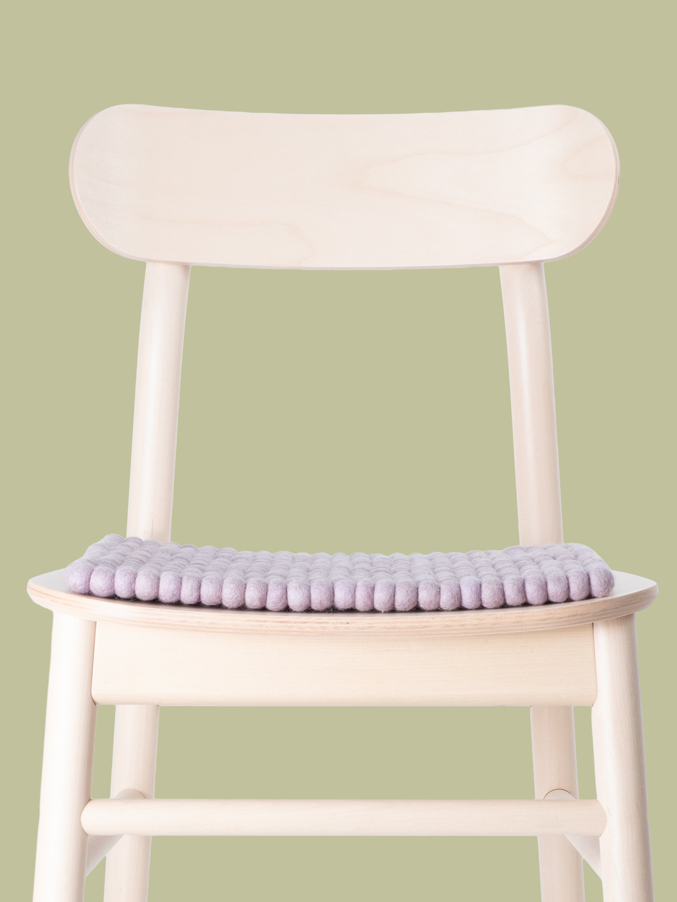 The light purple seat pad Marla brings warmth and softness to your favorite chair. Made from pure new wool, handcrafted in Nepal and produced under fair conditions. myfelt seat pads are water- and dirt-repellent and can be used on both sides.