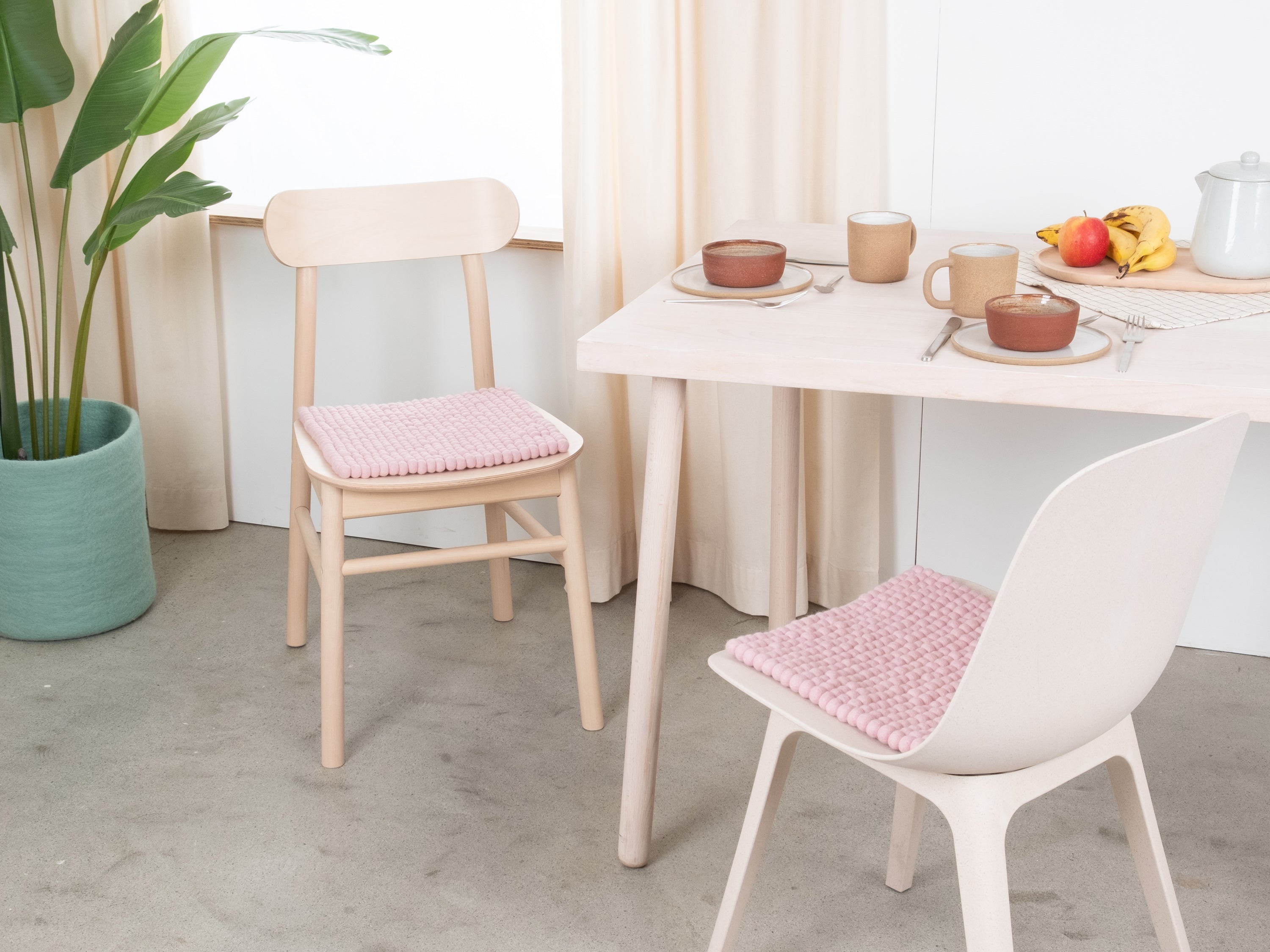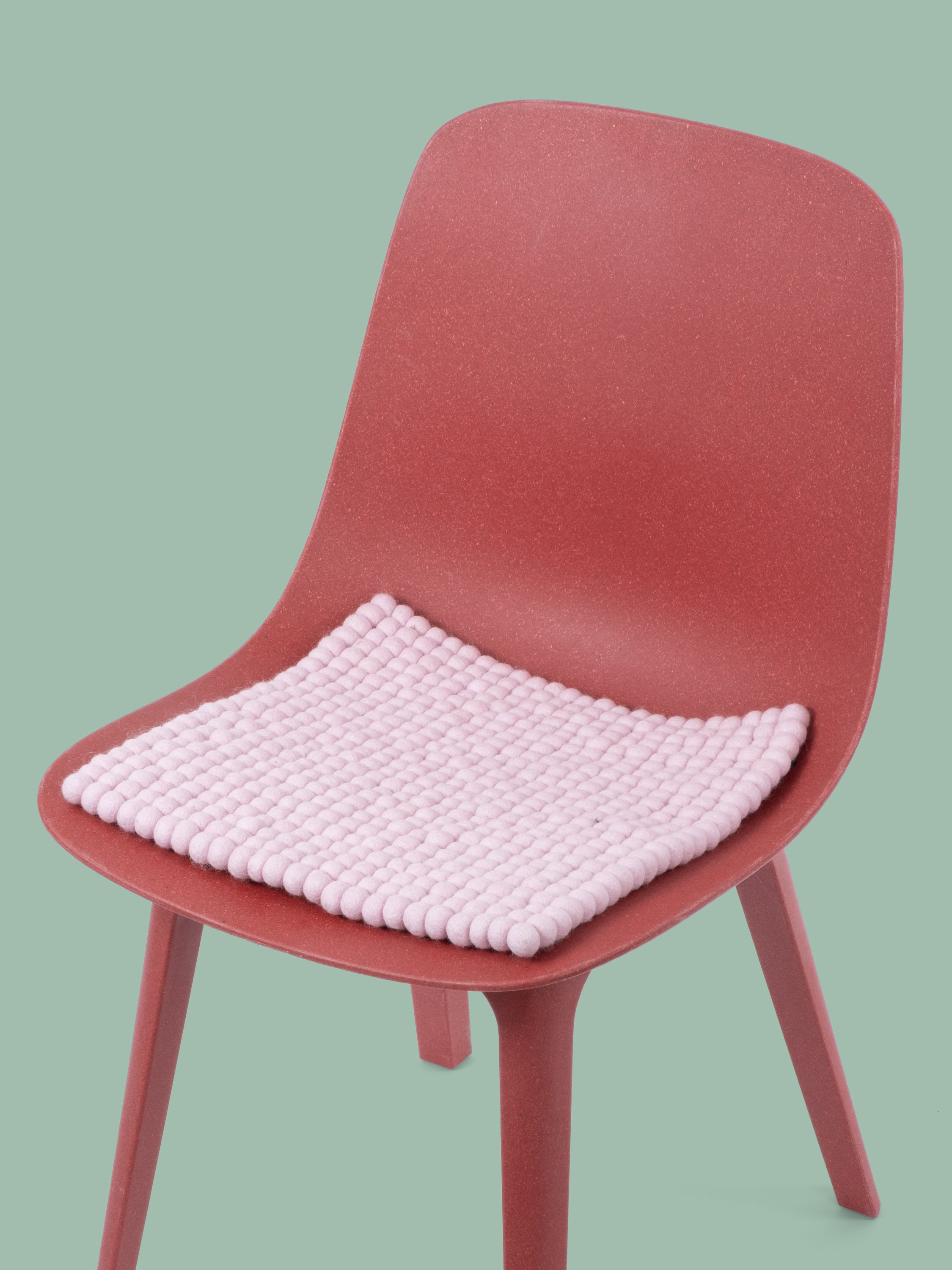 The soft pink seat pad Mona brings warmth and softness to your favorite chair. Made from pure new wool, handcrafted in Nepal and produced under fair conditions. myfelt seat pads are water- and dirt-repellent and can be used on both sides.