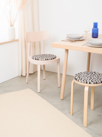 The round seat pad Néla (36 cm), made pure, untreated virgin wool, not only creates a pleasant and comfortable sitting experience, but also creates a classic and timeless atmosphere through its gentle design. Myfelt seat pads are dirt and water repellent.