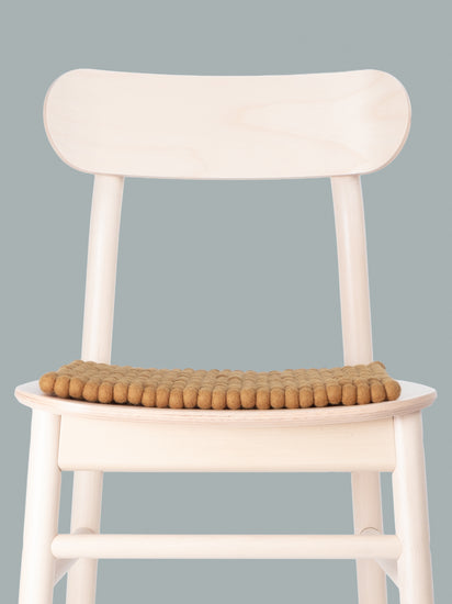 The caramel-colored seat pad Omar brings warmth and softness to your favorite chair. Made from pure new wool, handcrafted in Nepal and produced under fair conditions. myfelt seat pads are water- and dirt-repellent and can be used on both sides.