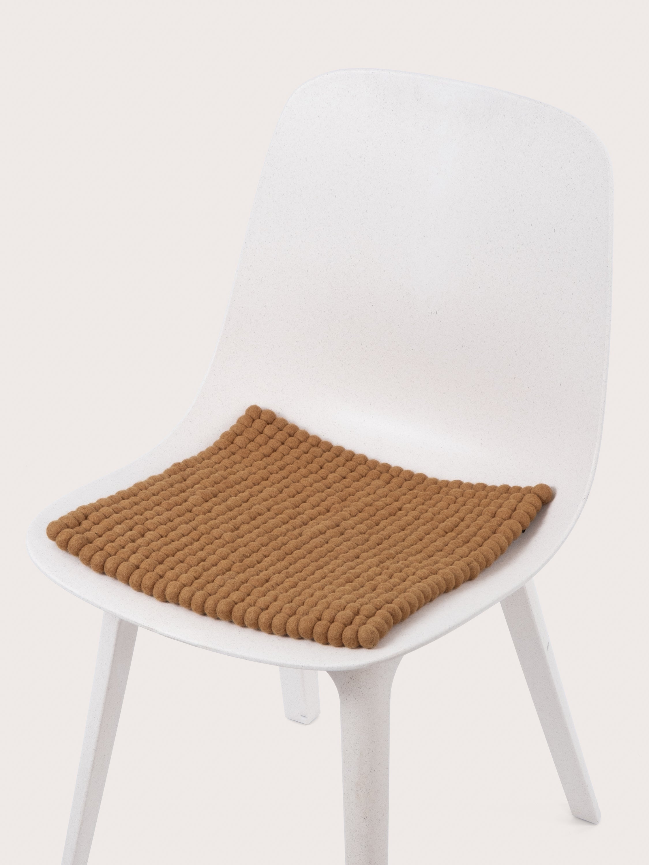 Square, caramel-colored seat pad made of pure new wool.