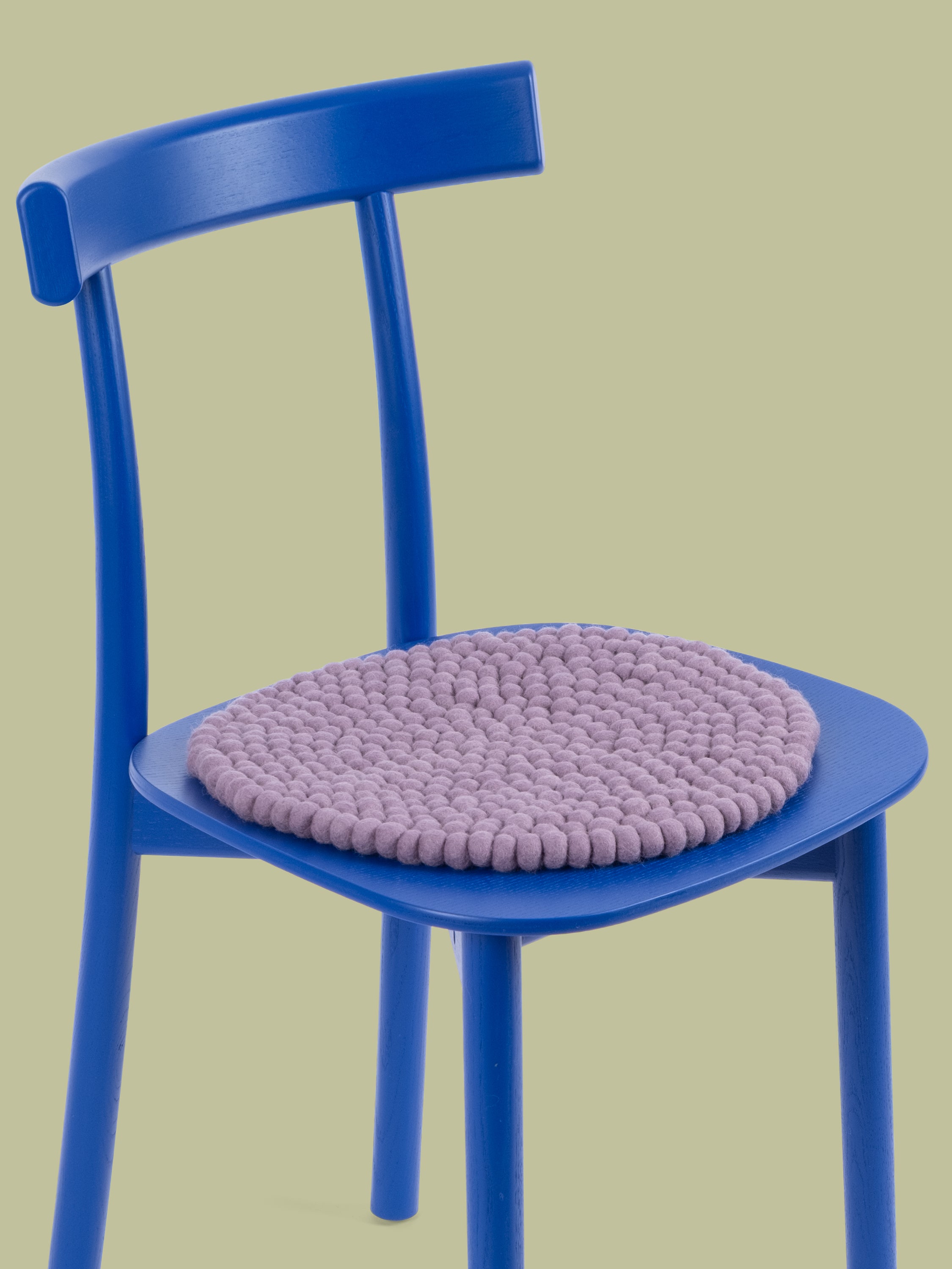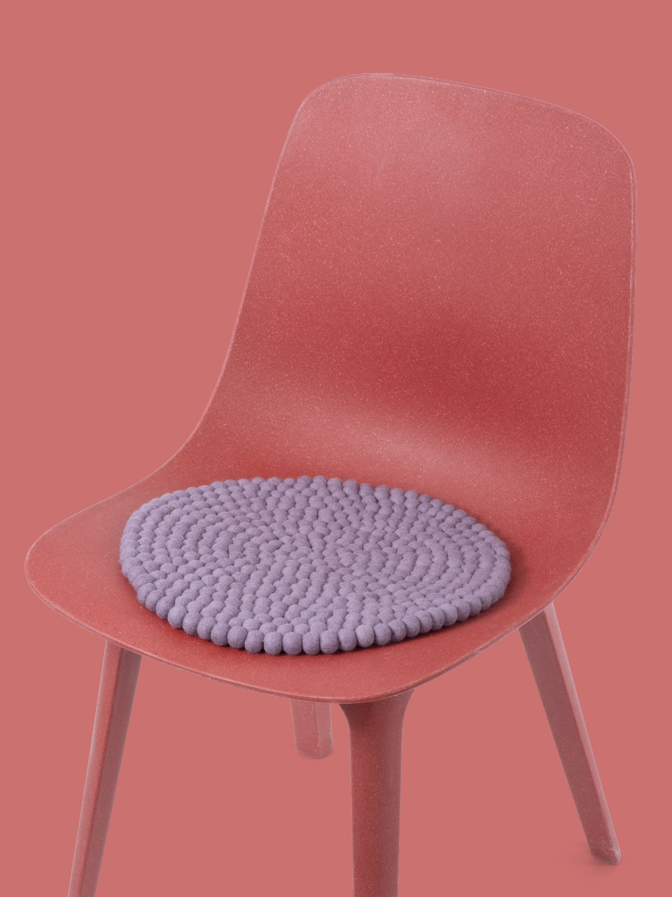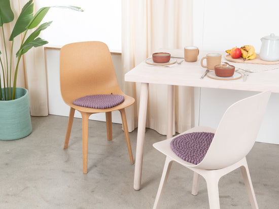 The lilac-gray seat pad Tove brings warmth and softness to your favorite chair. Made from pure new wool, handcrafted in Nepal and produced under fair conditions. myfelt seat pads are water- and dirt-repellent and can be used on both sides.
