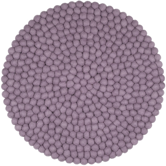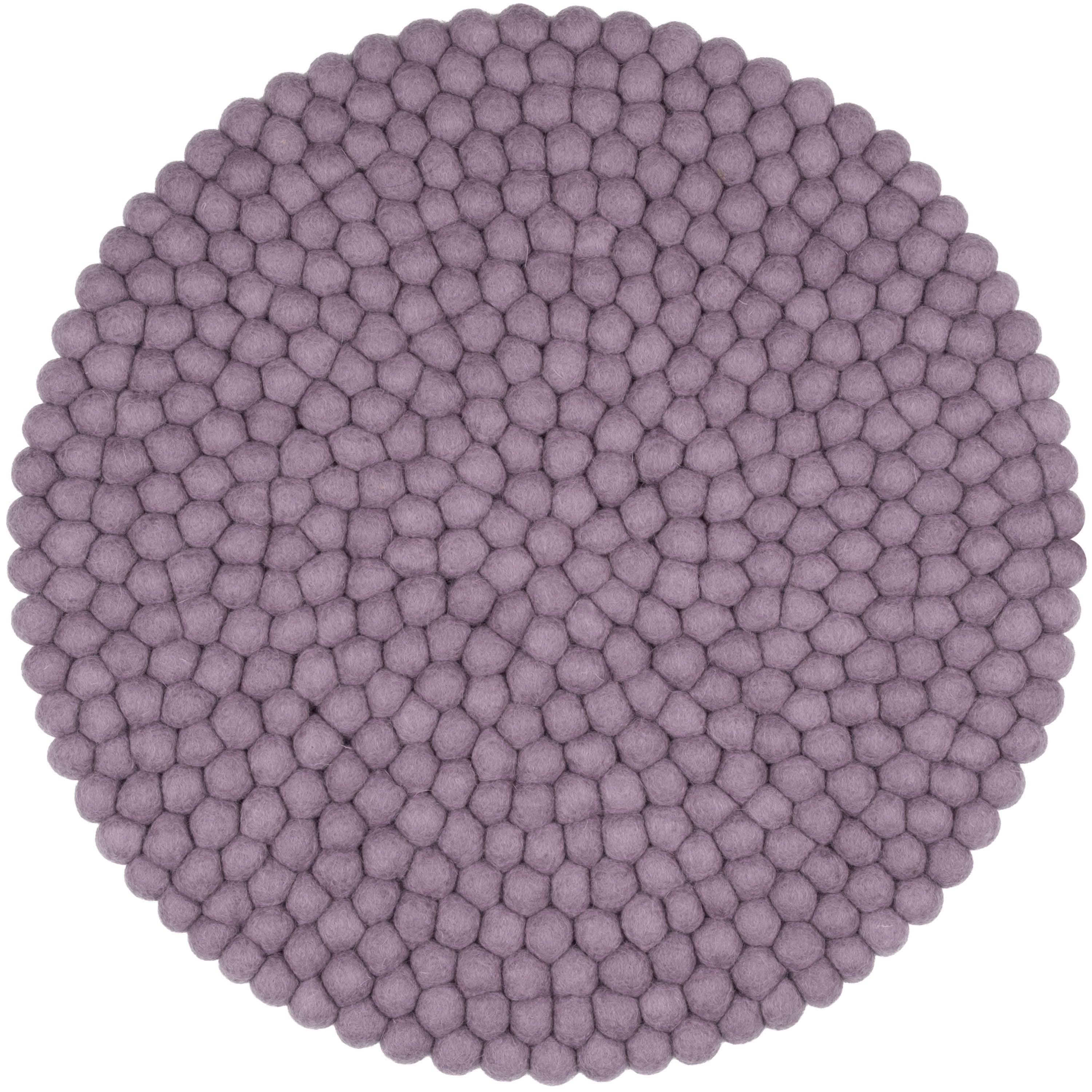 Round, lilac-gray seat pad made of pure new wool.