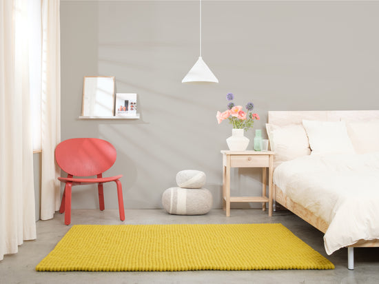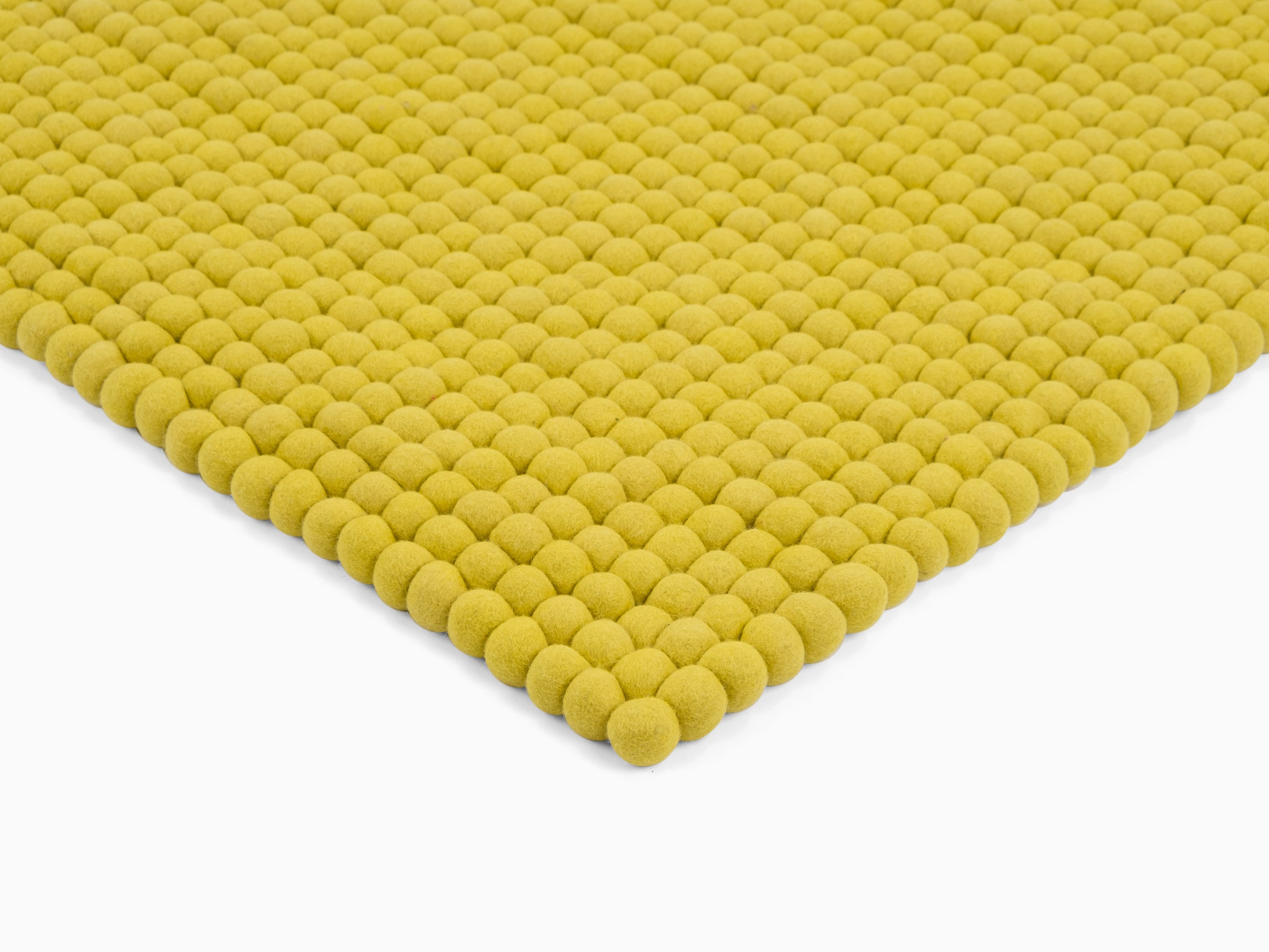 Kata is a felt ball rug in a fresh yellow-green. Bright, lively and full of energy, it brings movement to the room—cheerful in the living area or a point of light in your workspace. Adds vibrancy and lightness. Soft, robust and easy to care for. Handcrafted in Nepal from 100% pure new wool.