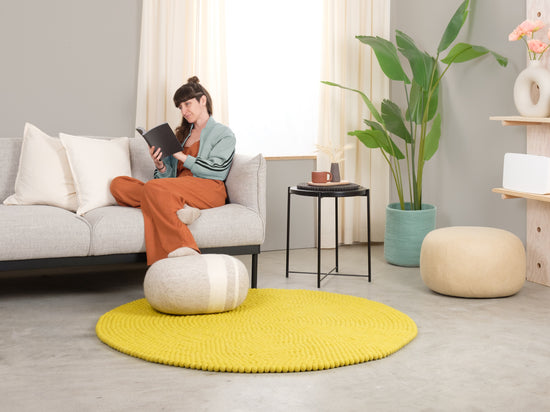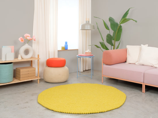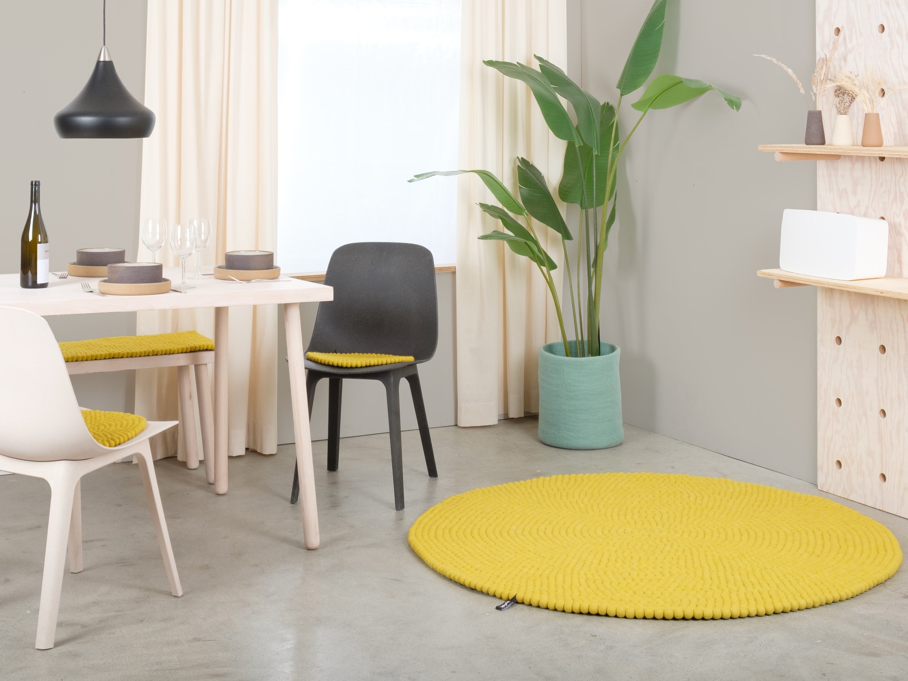 Kata is a felt ball rug in a fresh yellow-green. Bright, lively and full of energy, it brings movement to the room—cheerful in the living area or a point of light in your workspace. Adds vibrancy and lightness. Soft, robust and easy to care for. Handcrafted in Nepal from 100% pure new wool.