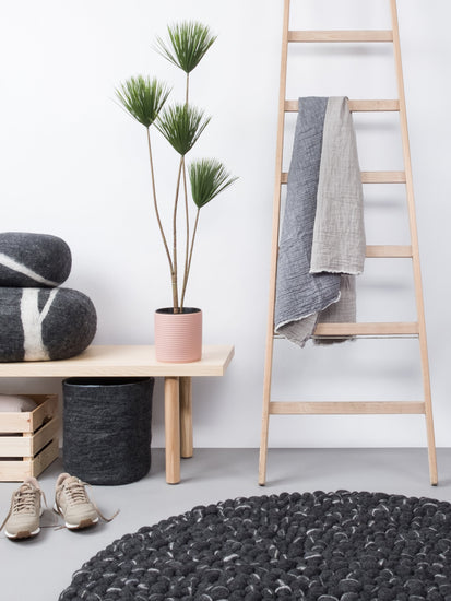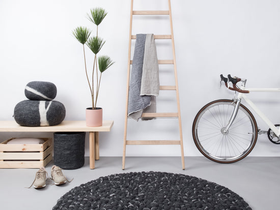 Kurt conjures up a clear and authentic accent in your living space. Its solid stone look combines strong anthracite with subtle nuances of light grey, creating a natural marble effect. No question about it, Kurt stands for a modern lifestyle. Above all, the clear coloring gives the rug a wonderful look with a Nordic fresh touch of nature. Like a play of light and shadow, the felt pebble rug harmonizes with a wide variety of interiors and underlines the individual character of your own home.