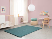 Noah is a felt ball rug in deep petrol. Powerful, clear and still relaxing—use as a statement piece or a quiet base. Works with light wood, concrete and neutral colours. Noticeably soft, durable and easy to care for. Handcrafted in Nepal from 100% pure new wool.