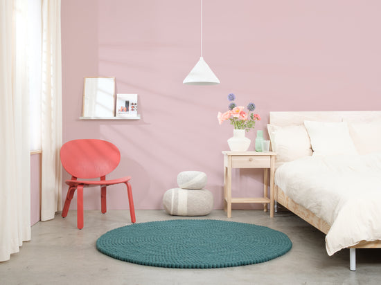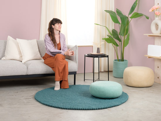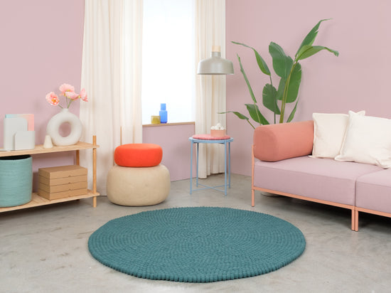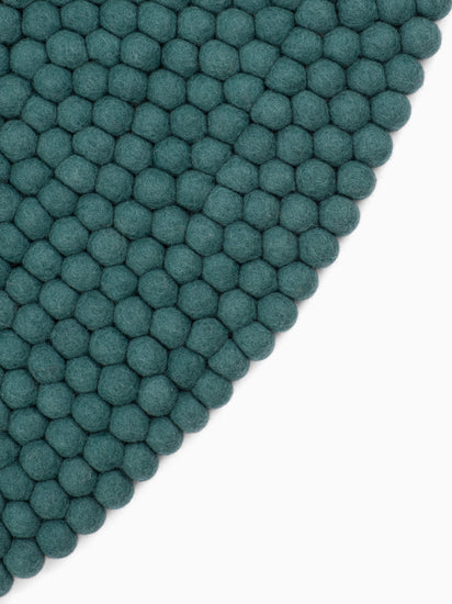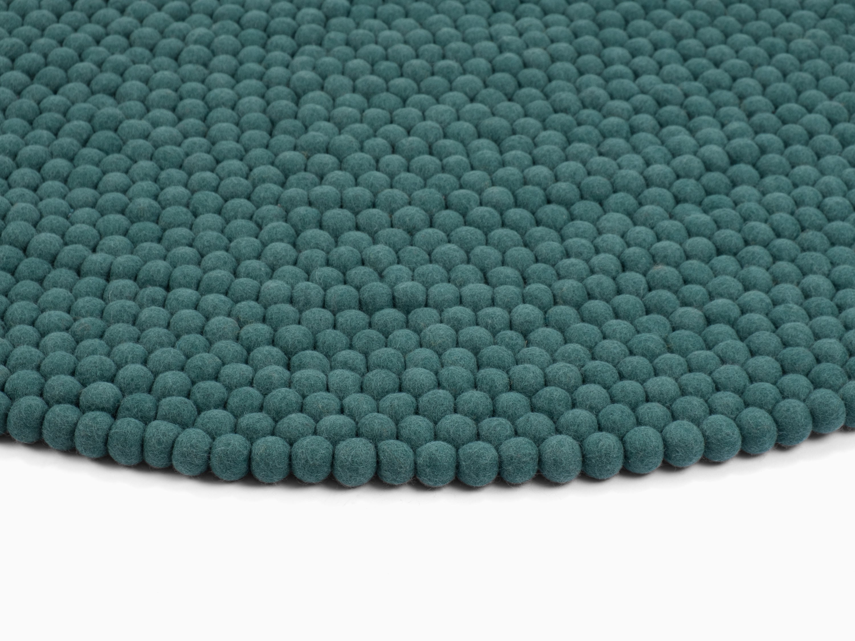 Noah is a felt ball rug in deep petrol. Powerful, clear and still relaxing—use as a statement piece or a quiet base. Works with light wood, concrete and neutral colours. Noticeably soft, durable and easy to care for. Handcrafted in Nepal from 100% pure new wool.