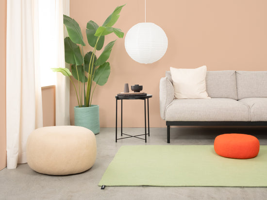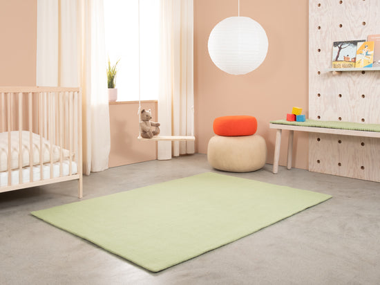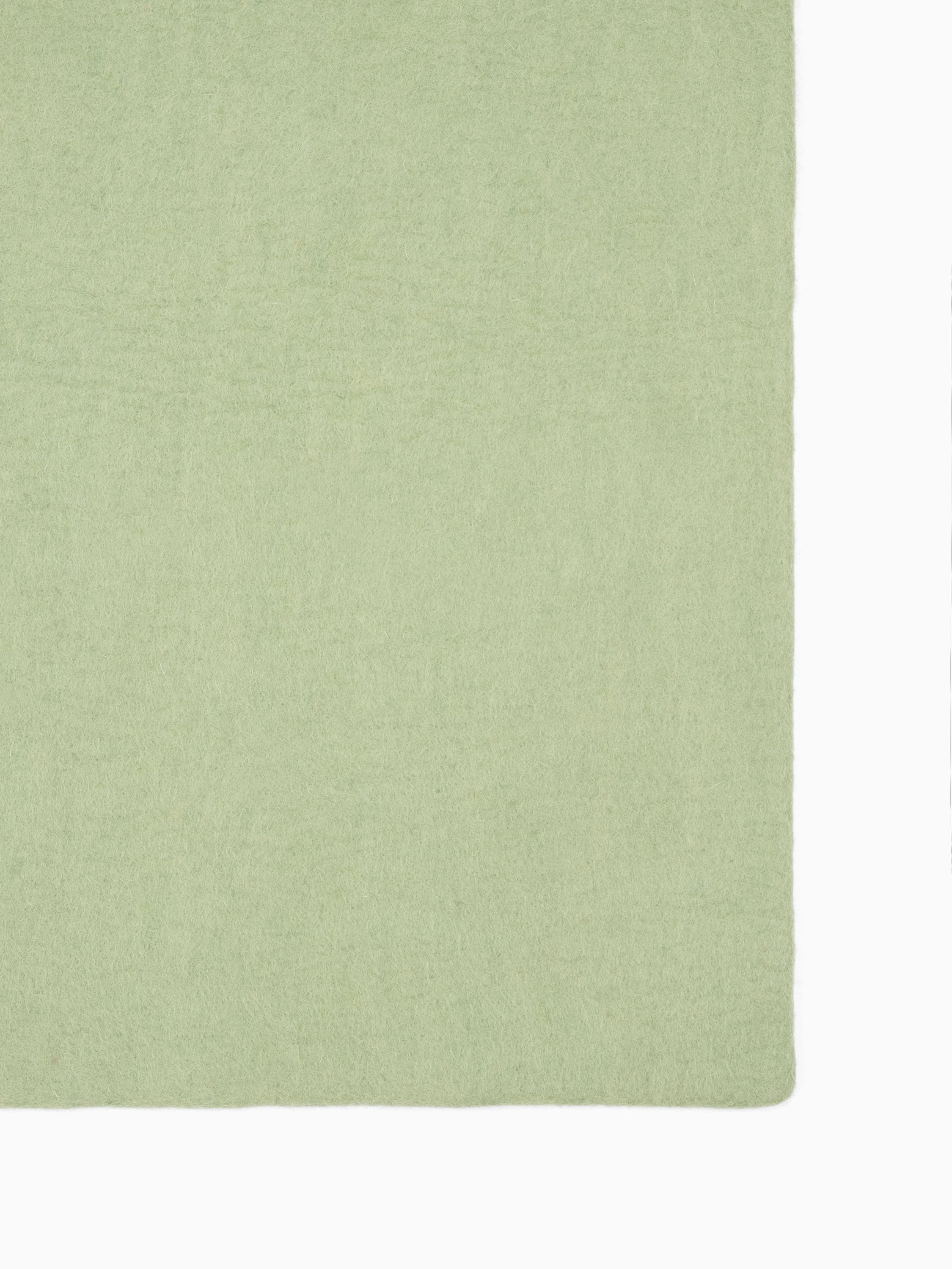 Lasse is a felt rug in gentle sage green. It brings calm and lightness into the room and harmonises with wood, white, and natural tones. Soft underfoot, durable in everyday life, and naturally dirt-repellent. Handmade in Nepal from 100% pure new wool.